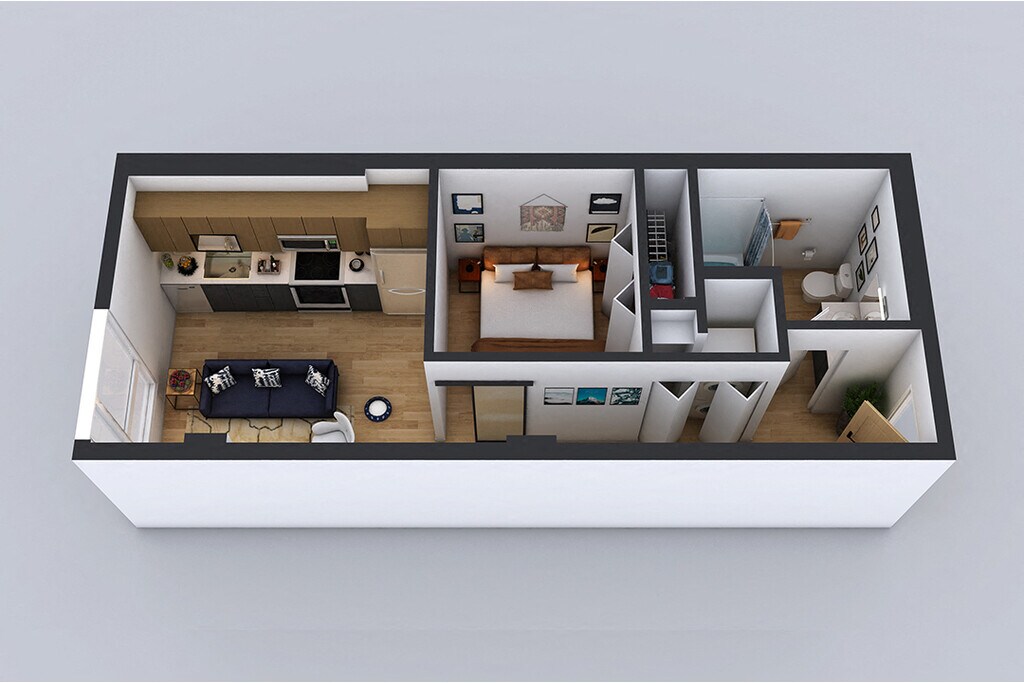 1 Dormitorio, 1 Baño, 587 pies²Disponible AhoraGalería del Modelo