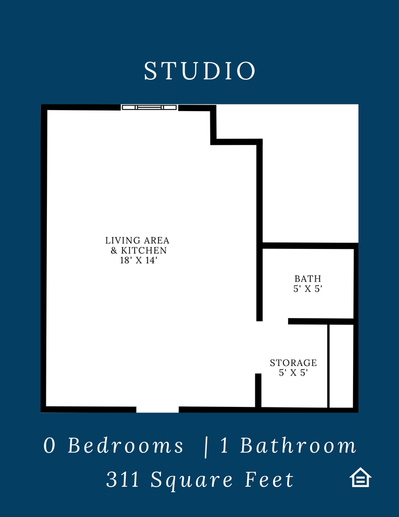 0 Bedroom 1 Bathroom - Imagen 9 Los planos son representaciones artísticas. Todas las dimensiones son aproximadas. El producto y las especificaciones reales pueden variar en tamaño o detalle. No todas las características están disponibles en cada vivienda en alquiler. Por favor, consulta con un representante para obtener más detalles.