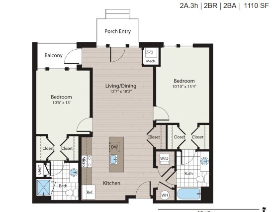 1B.2m - Plano 1 Unidad de apartamento: The Loop-267Modelo de apartamento: 1B.2mDesde $1,8061 Dormitorio, 1 Baño, 753 sq ftDisponible Ahora![]()