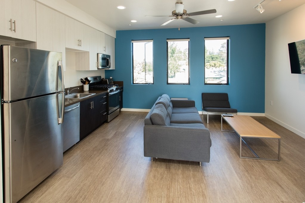 Este es un proyecto de alojamiento residencial cerca del campus para los estudiantes de Cal Poly y Cuesta. Los contratos de arrendamiento se firman "por cama", con cocina/sala de estar compartida para un máximo de cuatro residentes. La planta baja está ocupada por tres tiendas de venta al por menor y empresas comerciales, además de un centro de estudios religioso para estudiantes fuera del campus. Los apartamentos ocupan el segundo y tercer piso del proyecto. Un elevador para personas con problemas de movilidad está disponible para acceder a los apartamentos del segundo piso. En este momento, hay dos habitaciones disponibles por solo para hombres los estudiantes para el otoño de 2021 el año escolar. Summer se pueden acomodar de la mudanza.