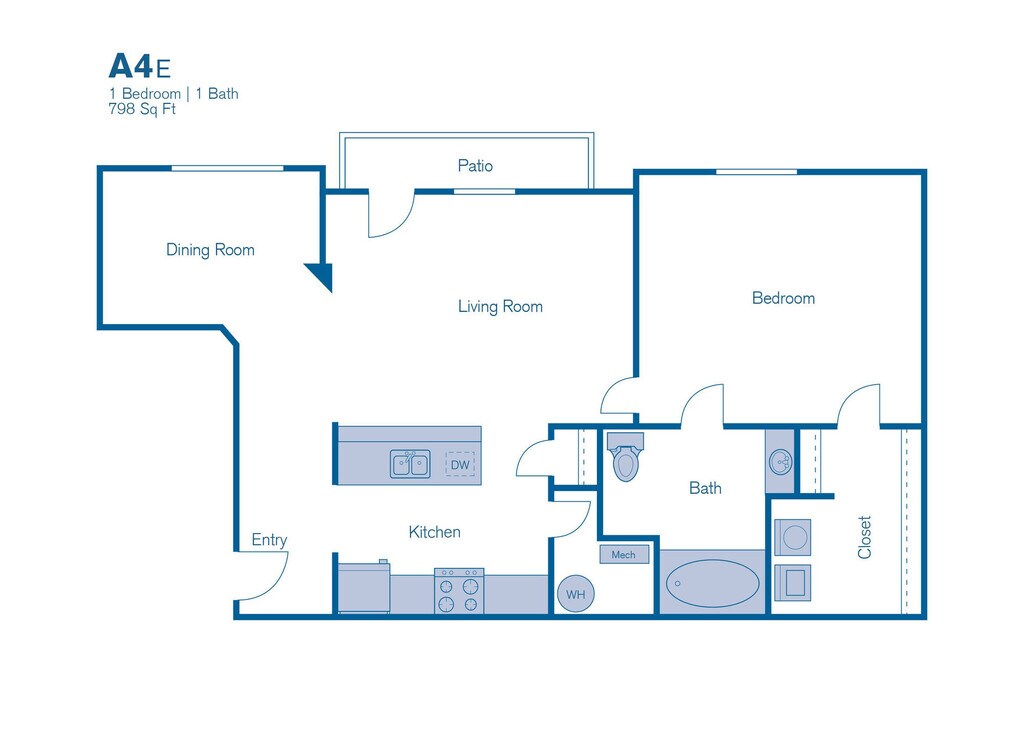 Modelo de apartamento: A1WDesde $1,7101 Dormitorio, 1 Baño, 705 sq ftDisponible AhoraPlanosFotos![]()