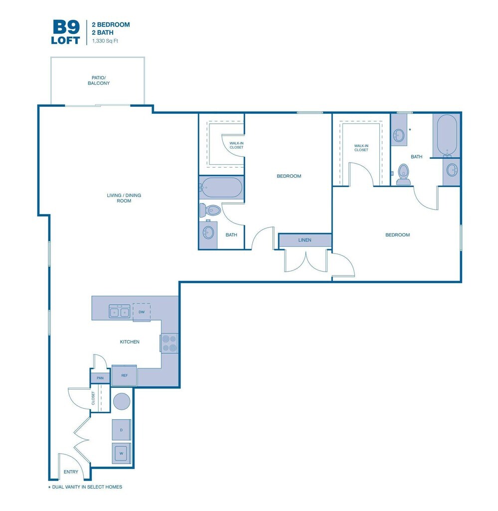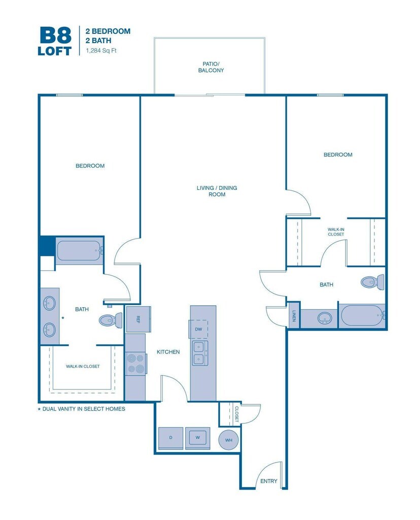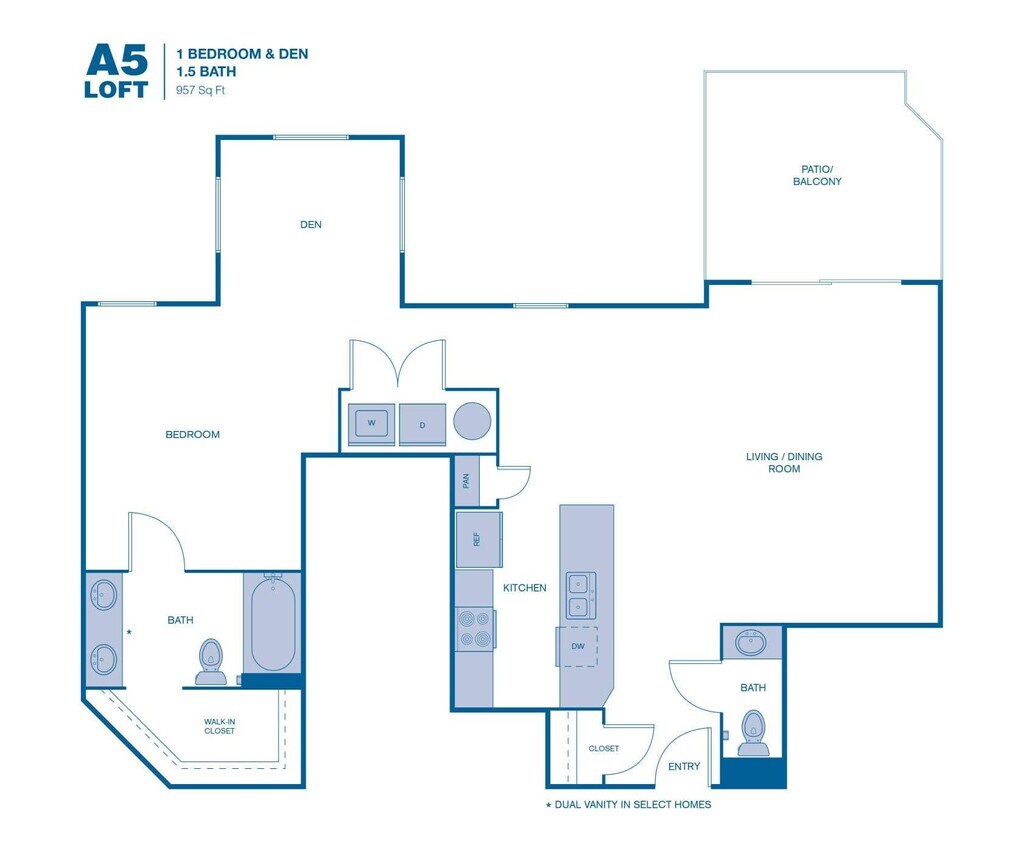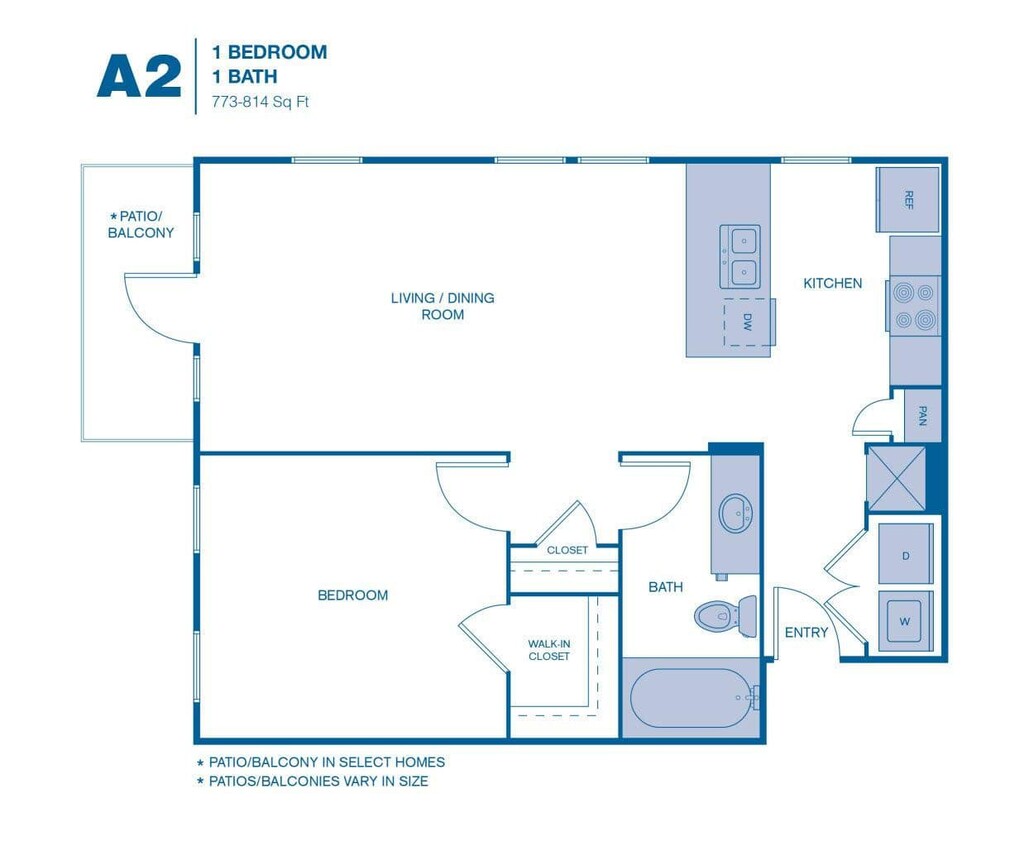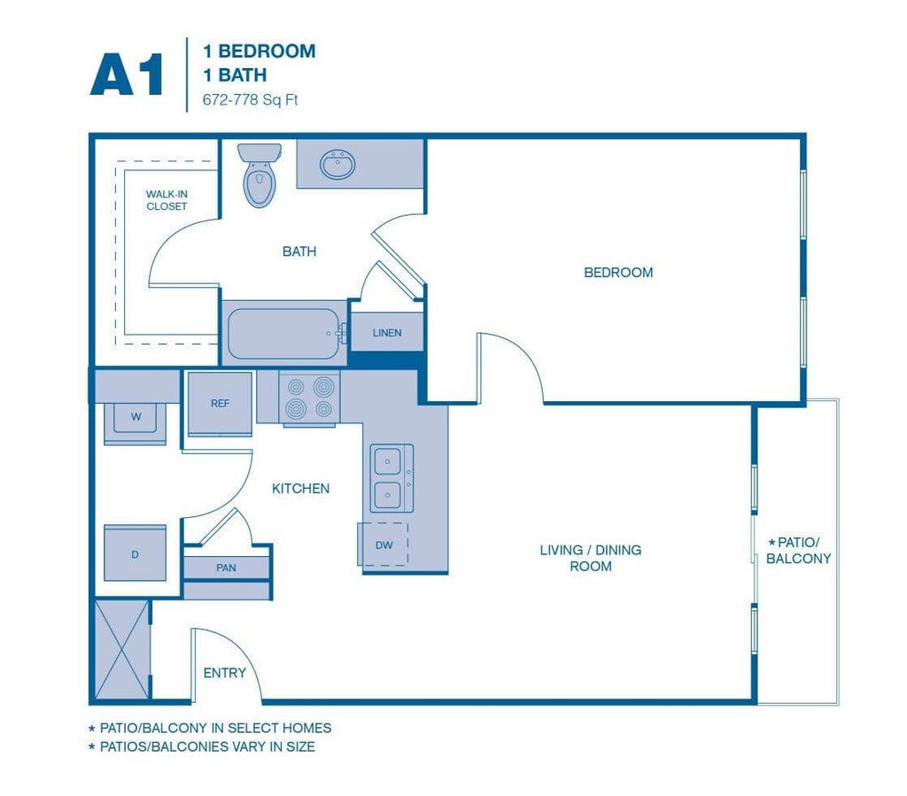 Modelo de apartamento: A1Desde $1,5351 Dormitorio, 1 Baño, 778 sq ftDisponible Ahora![]()