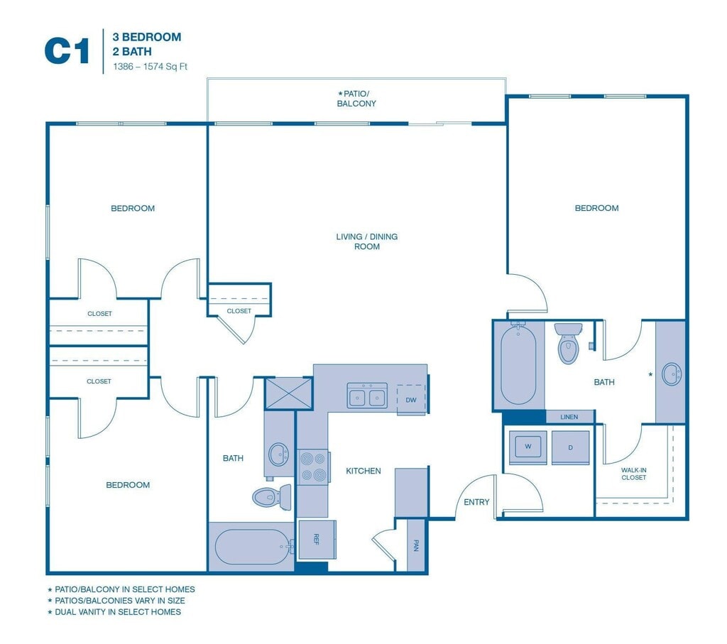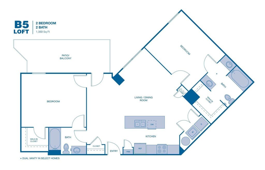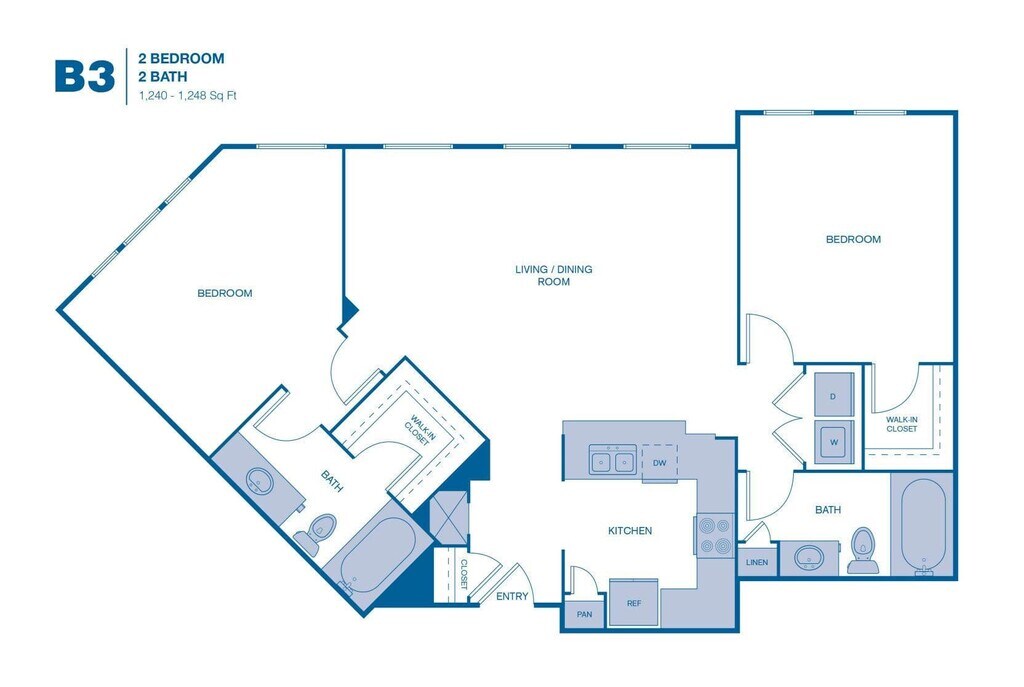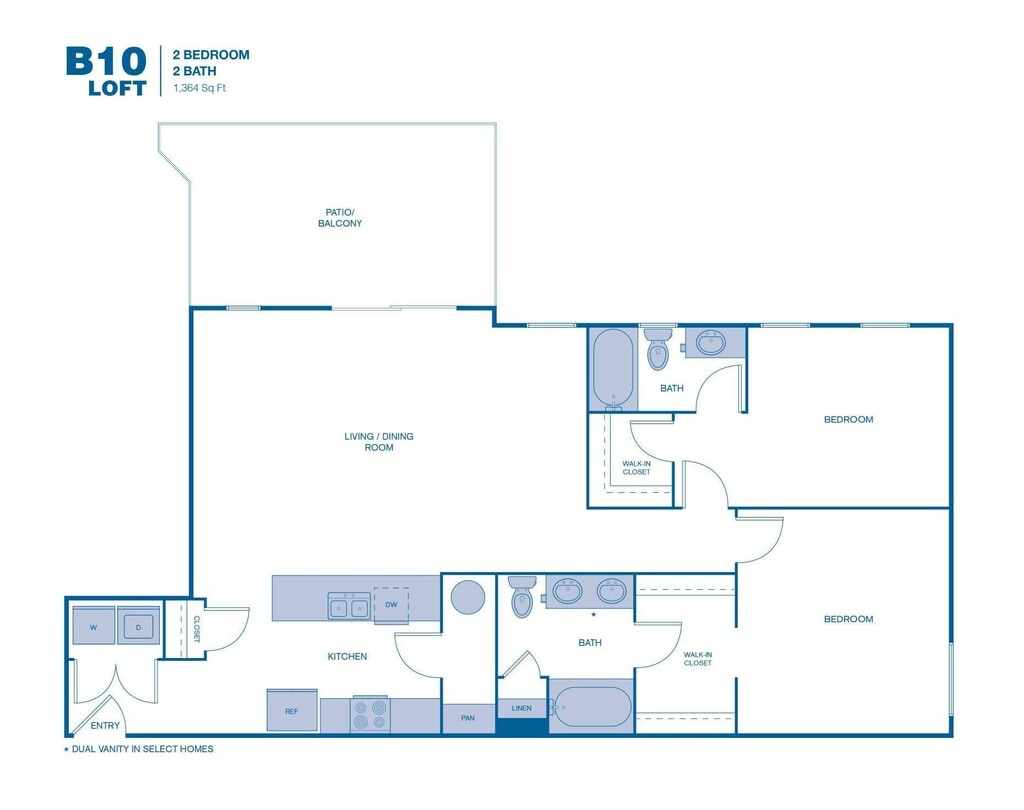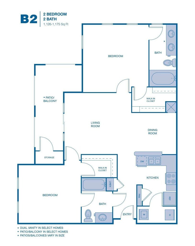 Modelo de apartamento: A1Desde $1,5351 Dormitorio, 1 Baño, 778 sq ftDisponible Ahora![]()