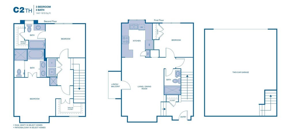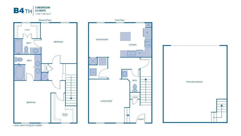 - Garajes adjuntos para dos automóviles de tamaño completo en las casas adosadas