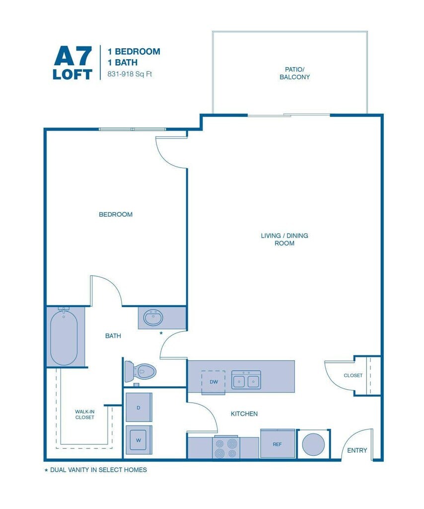 Modelo de apartamento: A7LOFT$1,5001 Dormitorio, 1 Baño, 831-918 sq ftDisponible Ahora![]()