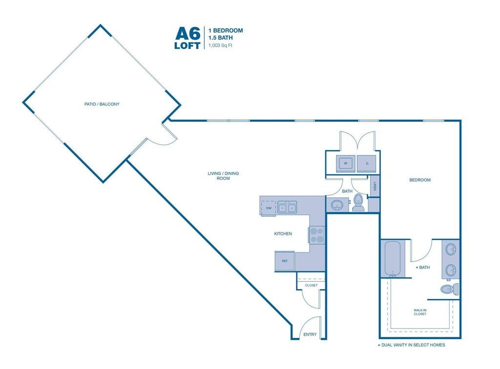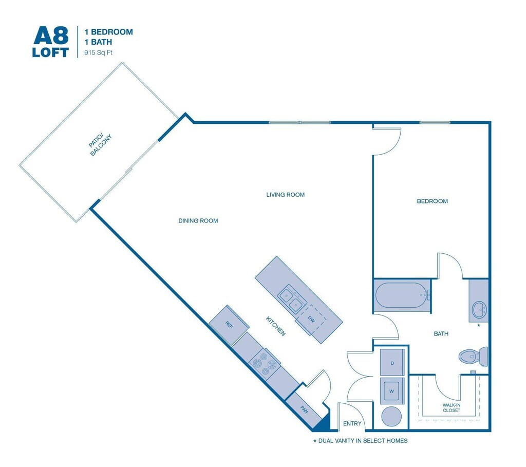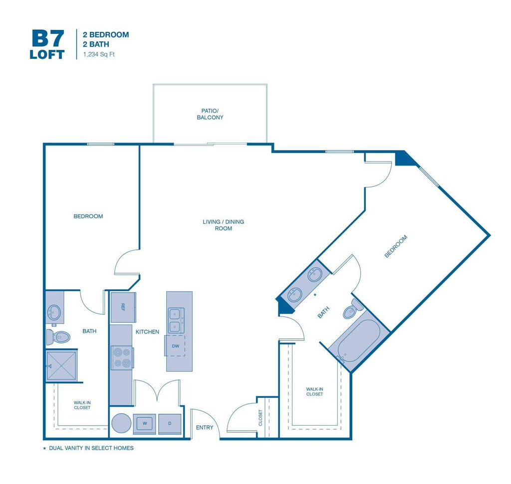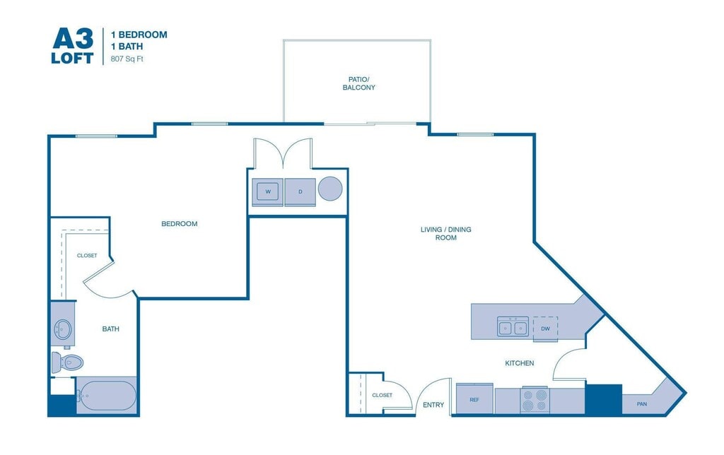 A7LOFT - Plano 1 Unidad de apartamento: E0207Modelo de apartamento: A7LOFT$1,5001 Dormitorio, 1 Baño, 831 sq ftDisponible AhoraPlano: A1