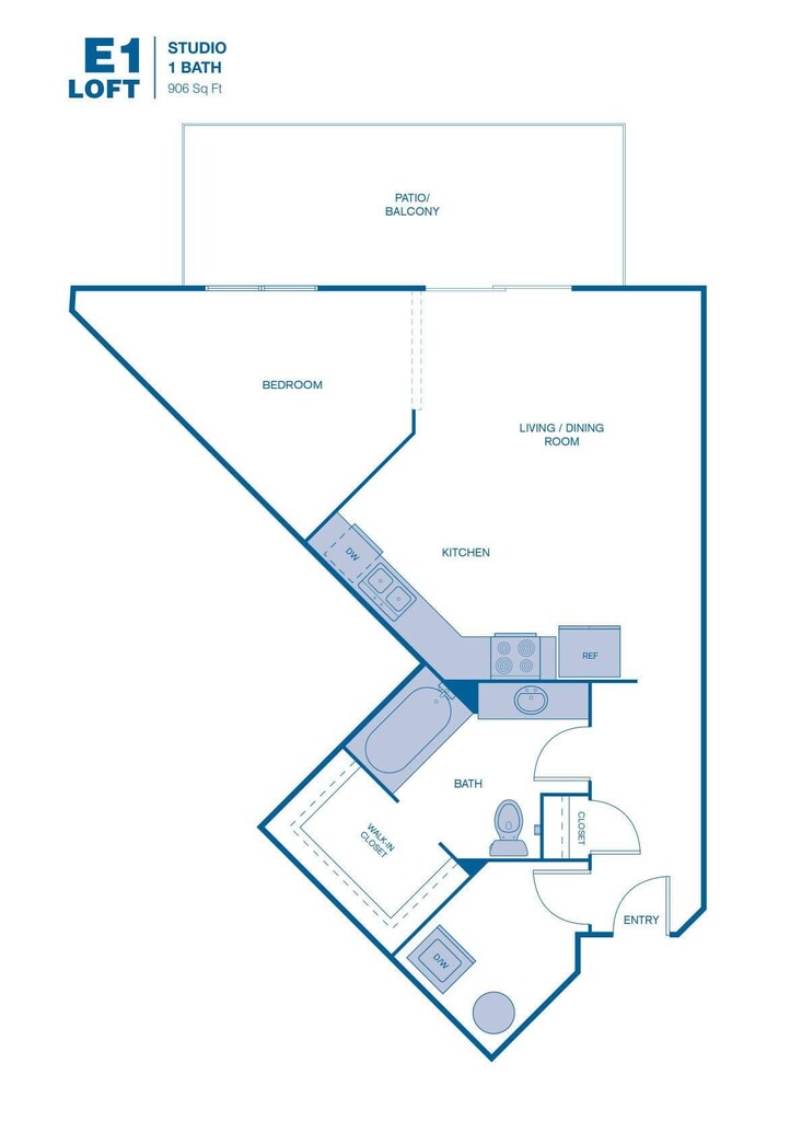 Modelo de apartamento: E1LOFTLlame para PreciosEstudio, 1 Baño, 906 sq ftNo Disponible![]()