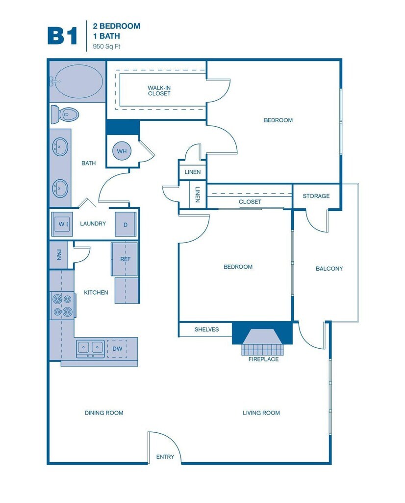 1 Dormitorio, 1 Baño, 795 pies²Disponible AhoraGalería del Modelo