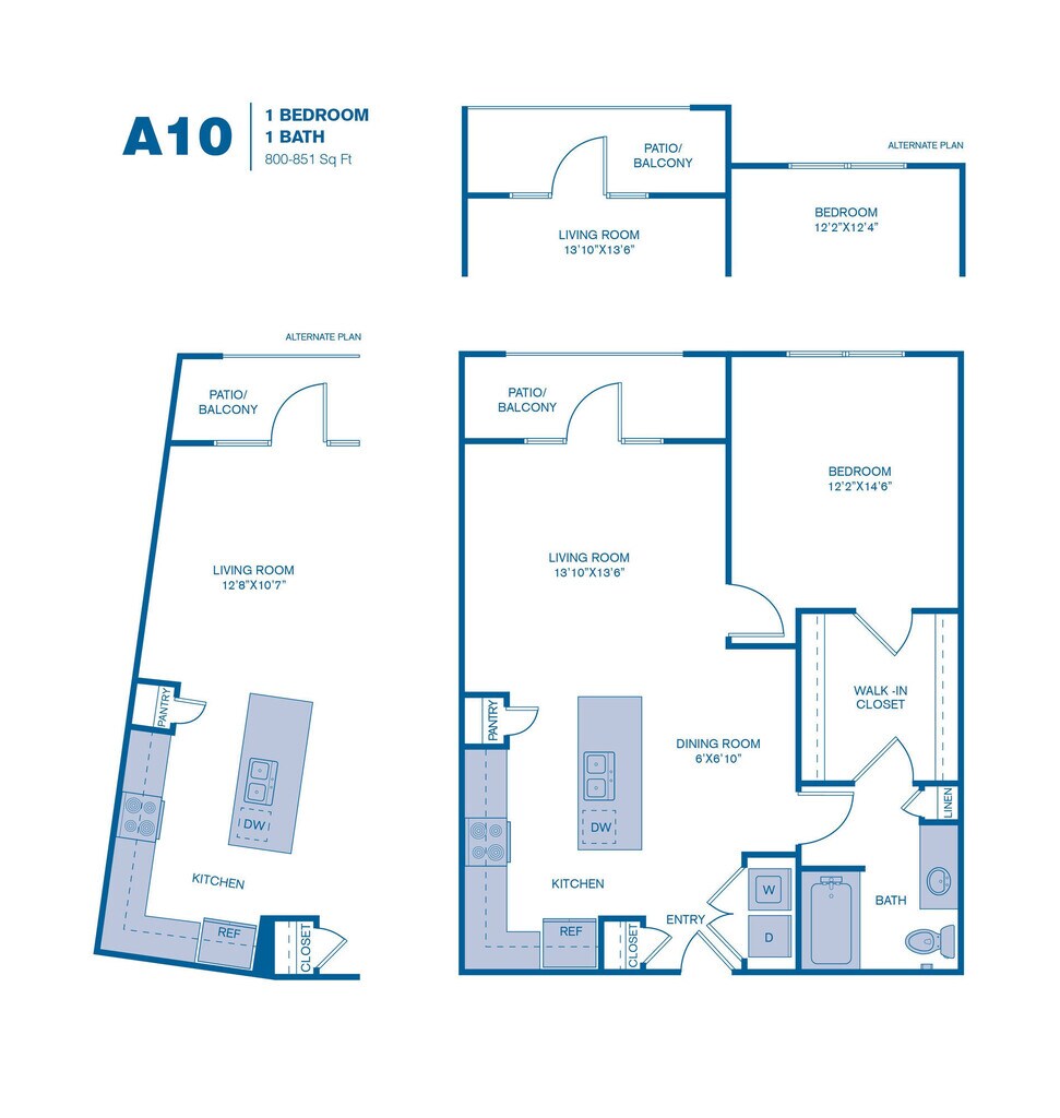 A10 - Plano 1 Unidad de apartamento: 012015Modelo de apartamento: A10$1,7001 Dormitorio, 1 Baño, 800 sq ftDisponible AhoraPlano: A4