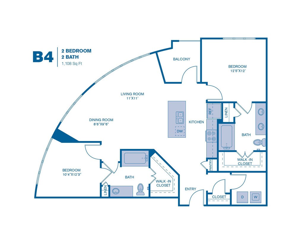 Modelo de apartamento: A8Desde $1,5701 Dormitorio, 1 Baño, 768-824 sq ftDisponible Ahora![]()
