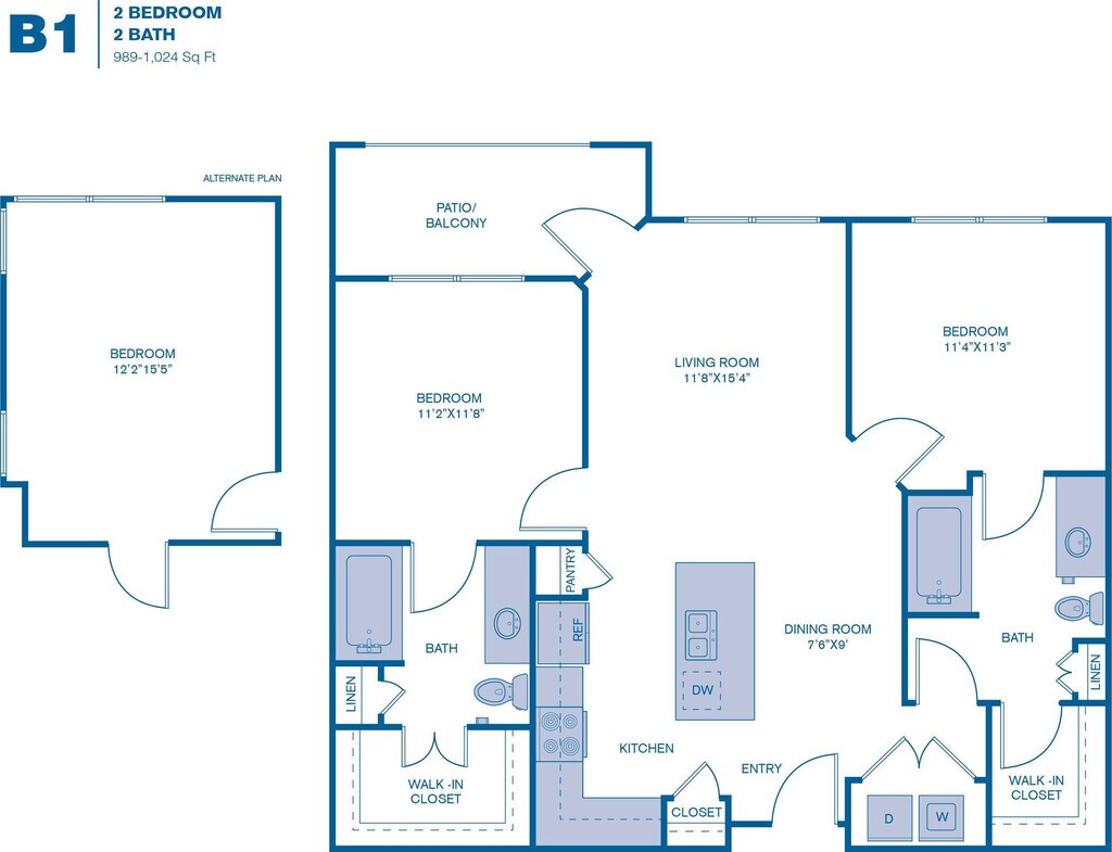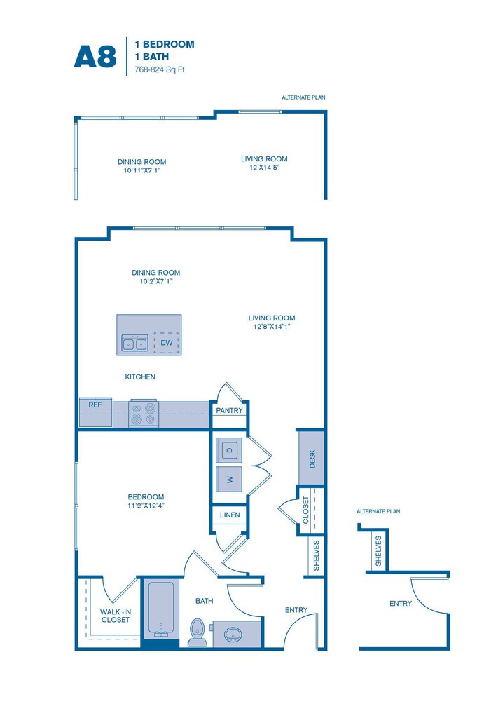 1 Dormitorio, 1 Baño, 768-824 pies²Disponible AhoraGalería del Modelo