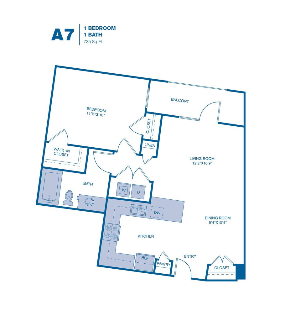Modelo de apartamento: A9Desde $1,6751 Dormitorio, 1 Baño, 778-800 sq ftDisponible AhoraPlanosFotos![]()