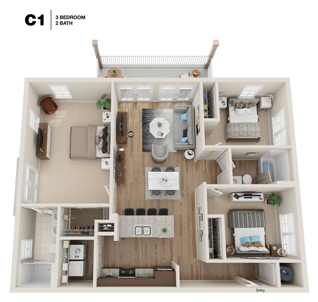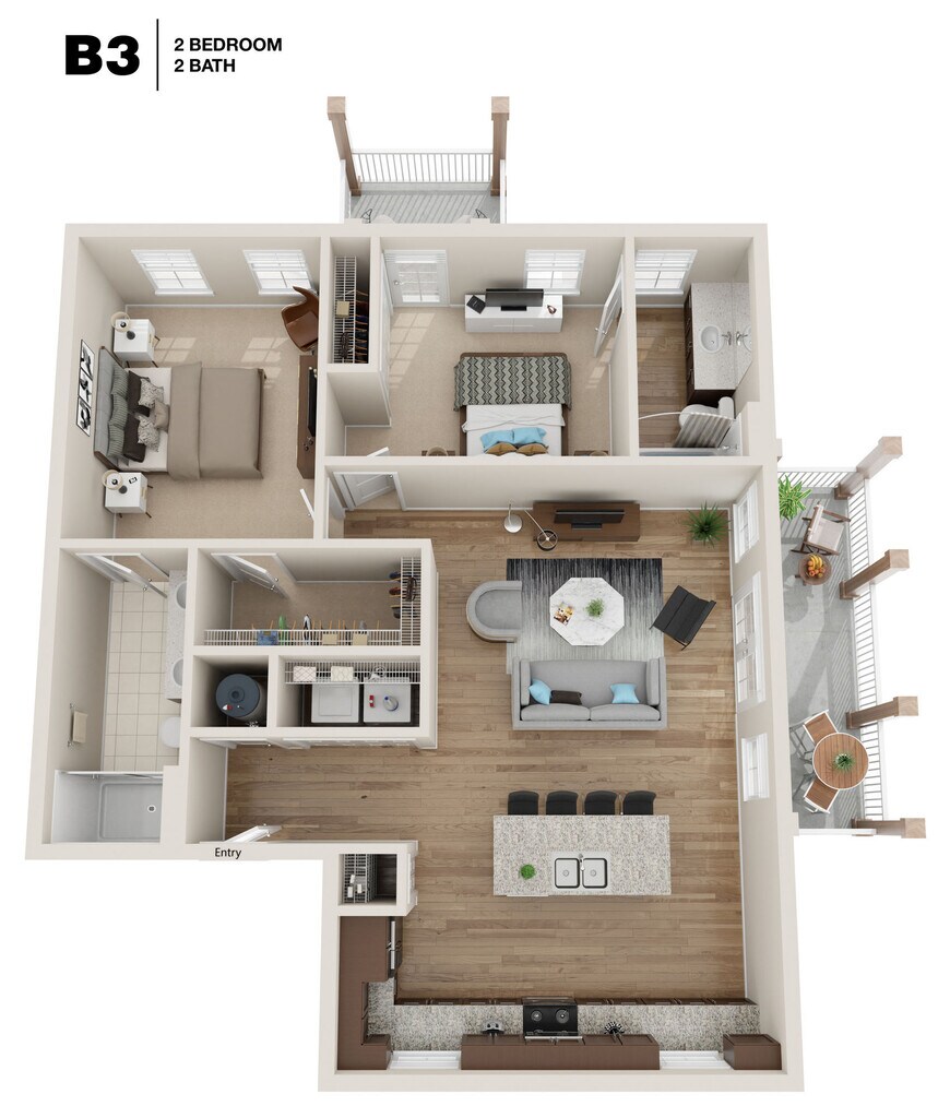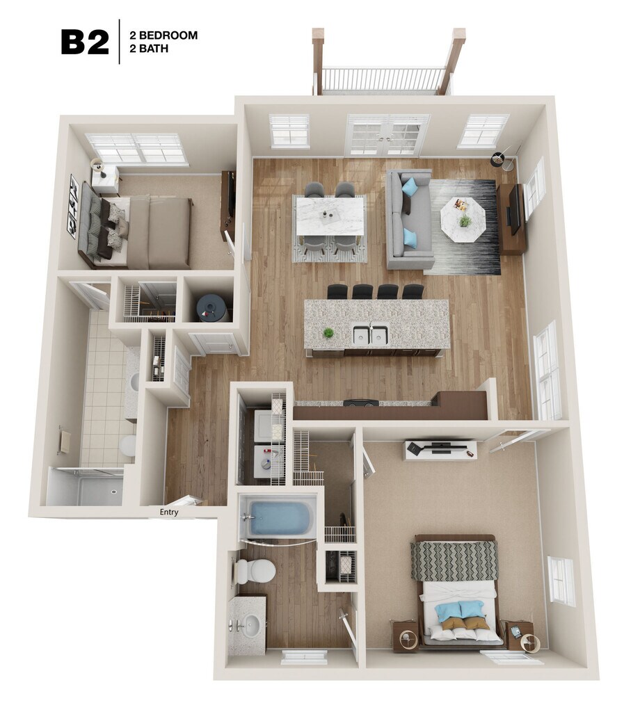 Modelo de apartamento: B1Desde $1,7702 Dormitorios, 2 Baños, 954 sq ftDisponible Ahora![]()