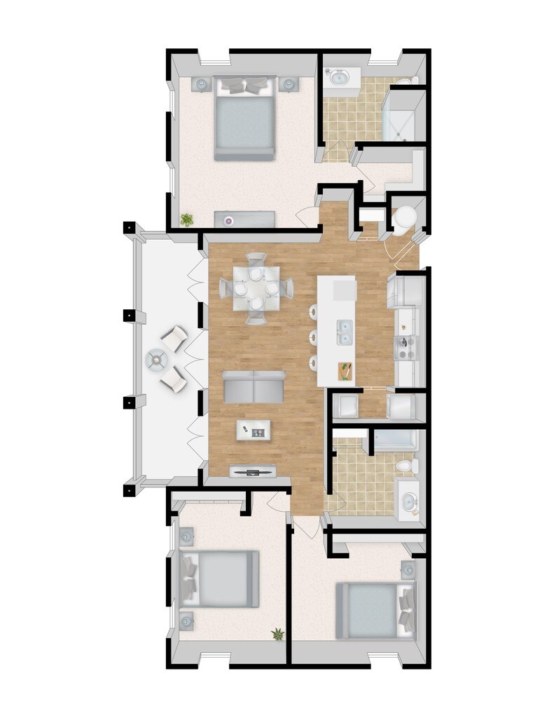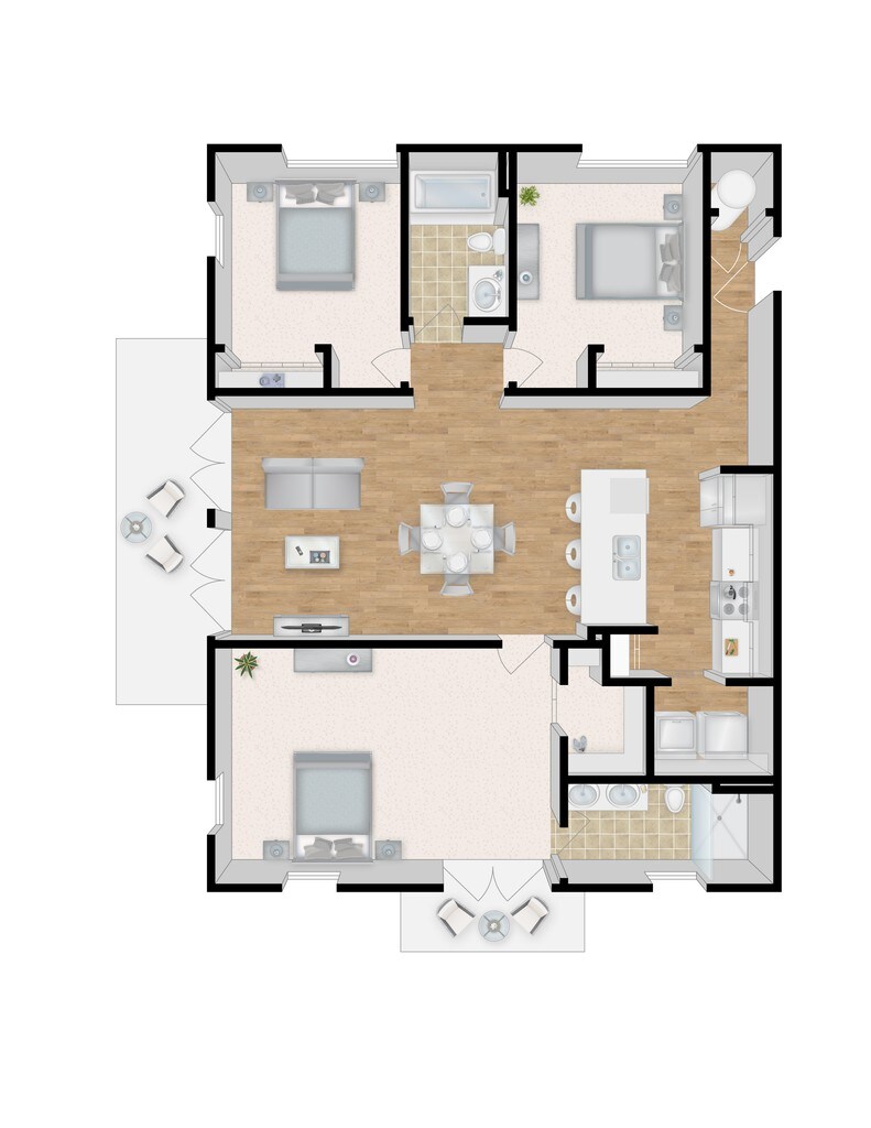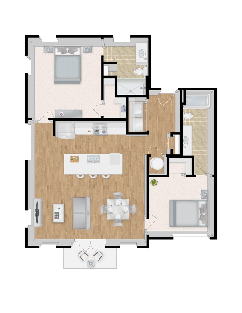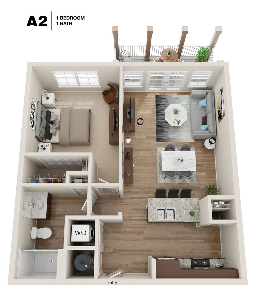 Modelo de apartamento: A2Desde $1,6251 Dormitorio, 1 Baño, 752 sq ftDisponible Ahora![]()