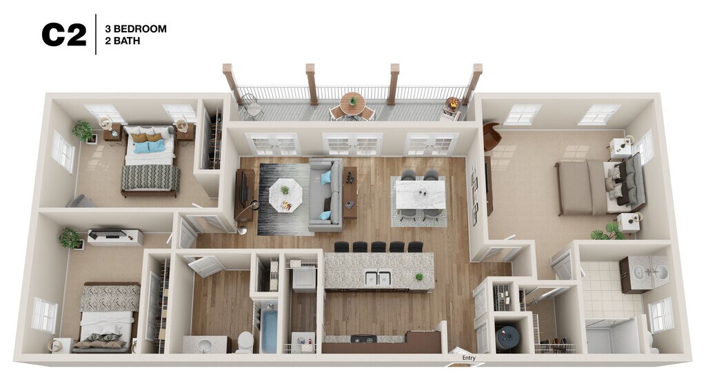 Modelo de apartamento: B2Desde $1,9802 Dormitorios, 2 Baños, 1061 sq ftDisponible December 21, 2025PlanosFotos![]()