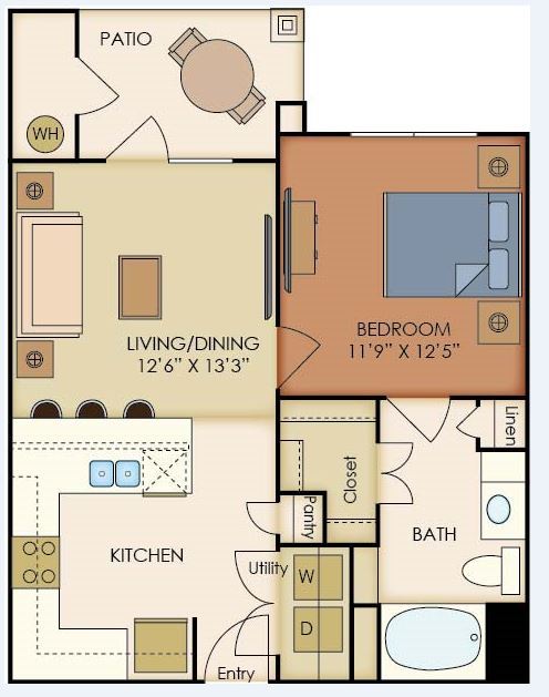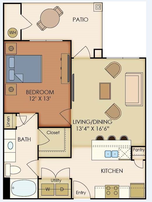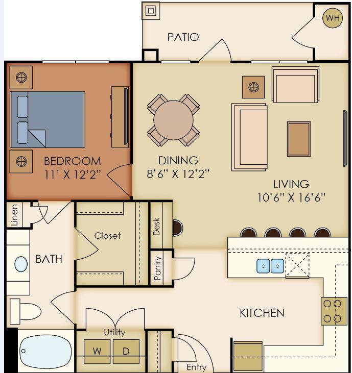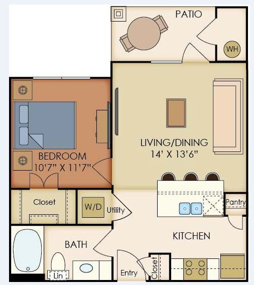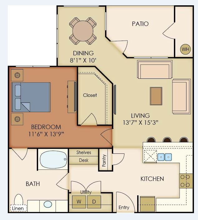 Modelo de apartamento: A31 Dormitorio, 1 Baño, 725 sq ftNo Disponible![]()