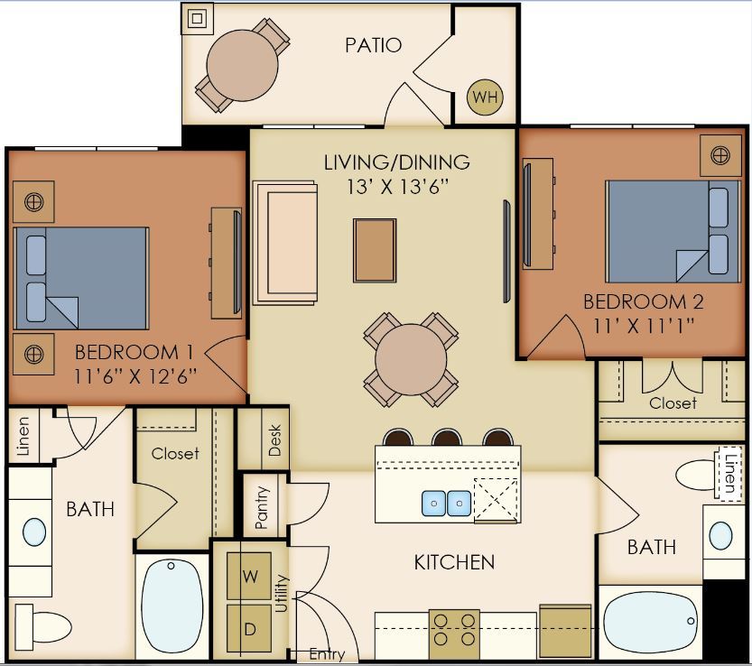 2 Dormitorios, 2 Baños, 1202 pies²El más grandeEsta opción tiene las unidades más grandes para este modeloDetalles de Diponibilidad