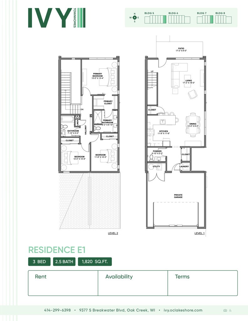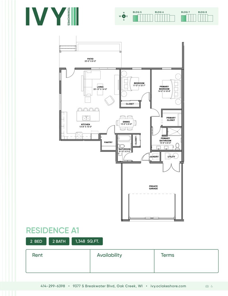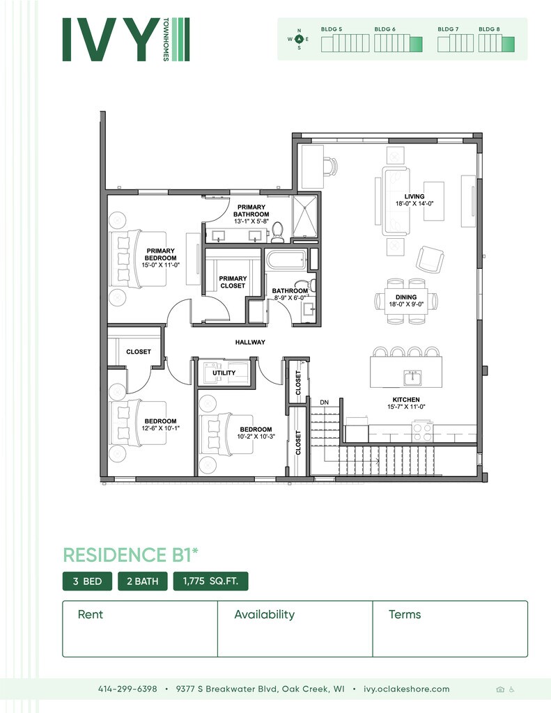 IVY Townhomes se encuentran en 9377 S Breakwater Blvd, Oak Creek, WI