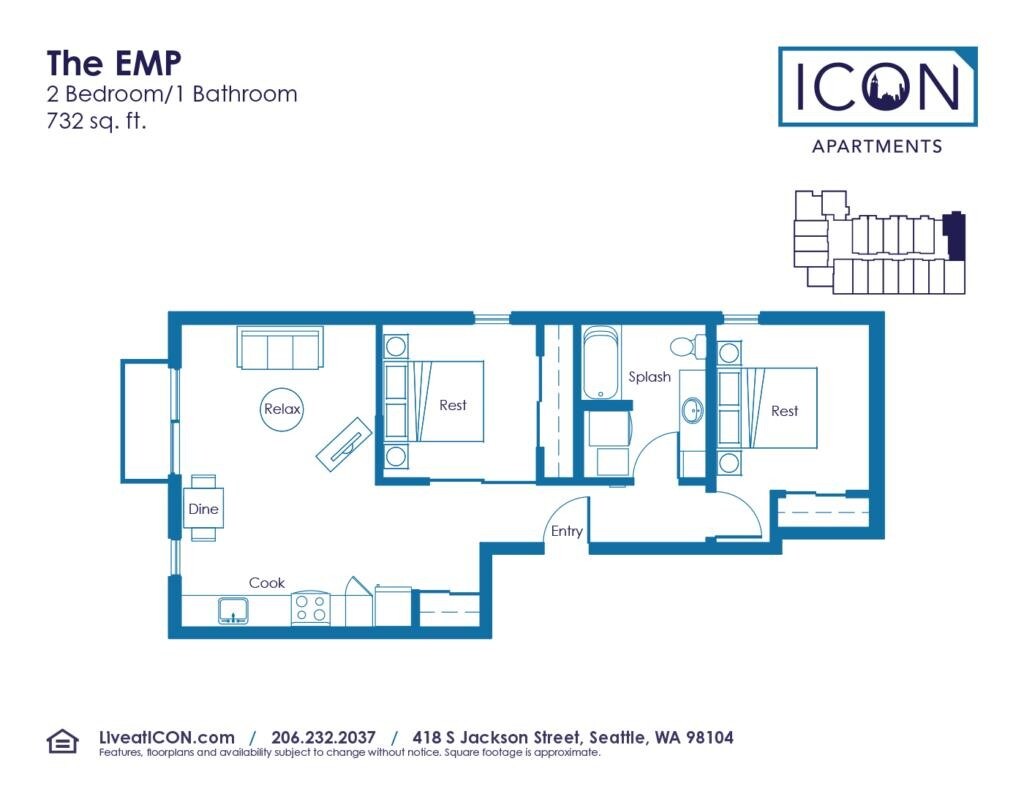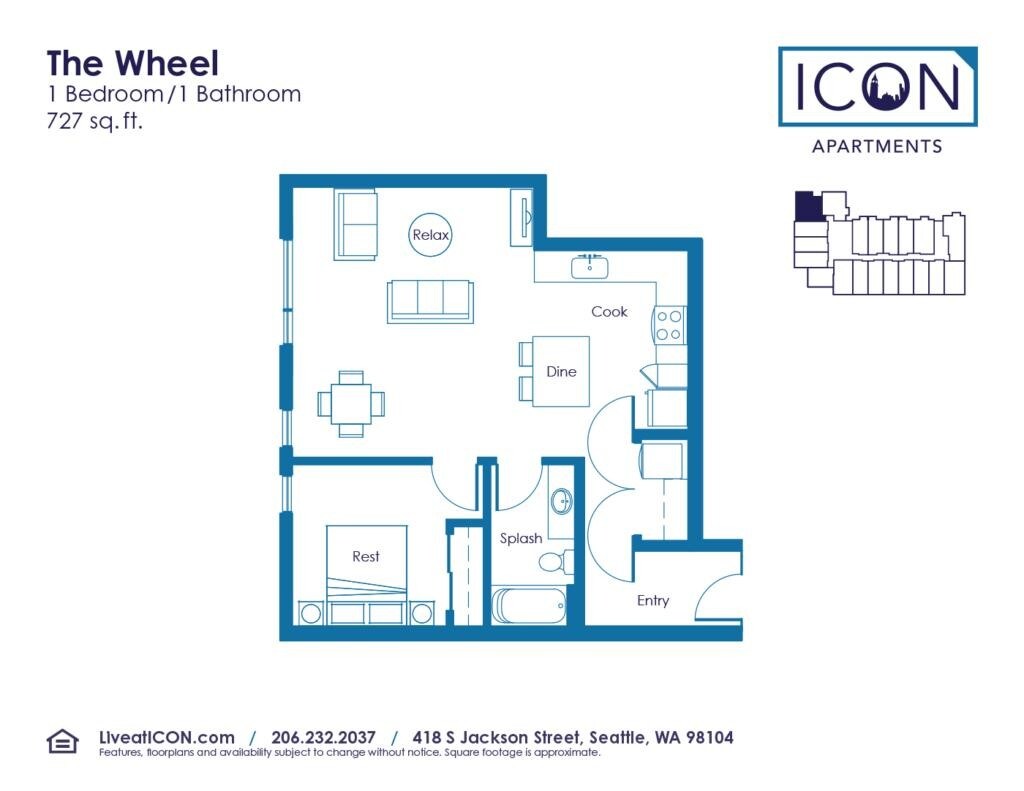 Icon Apartments ofrece apartamentos de 1 a 2 Dormitorios desde $1,599 con 515–732 pies cuadrados. Aquí está el precio actual y la disponibilidad: