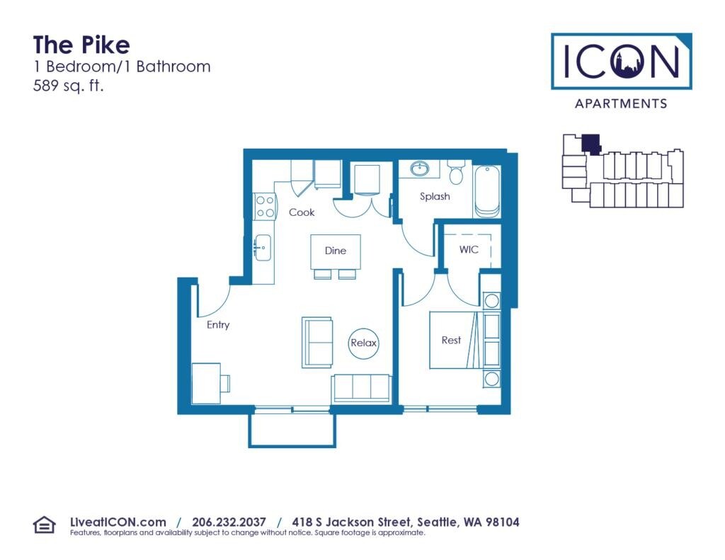 Icon Apartments se encuentra en el Barrio Chinatown y el código postal 98104 de Seattle, WA. Esta comunidad está gestionada profesionalmente por GRE Management LLC
