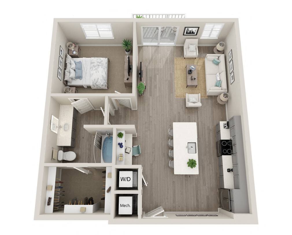 1 Dormitorio, 1 Baño, 707 pies²Disponible AhoraGalería del Modelo