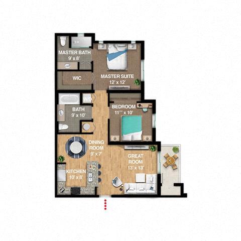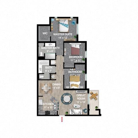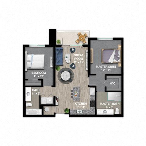 Modelo de apartamento: BoostDesde $1,4351 Dormitorio, 1 Baño, 895 sq ftDisponible Ahora![]()
