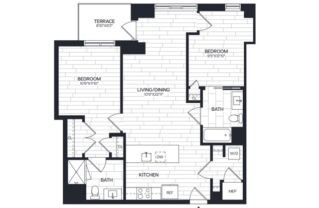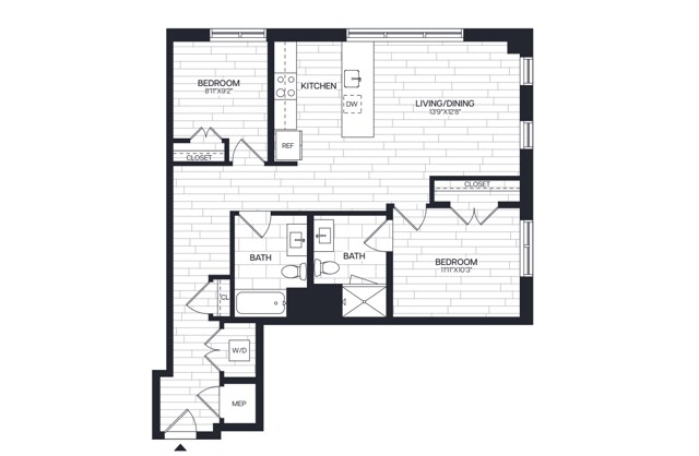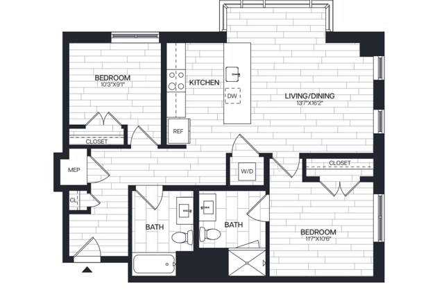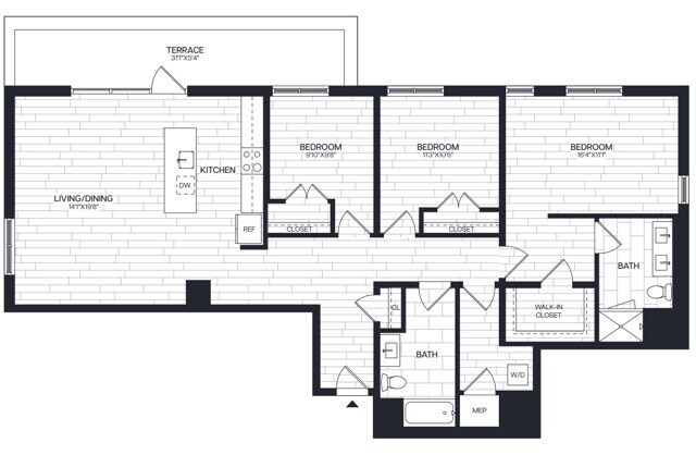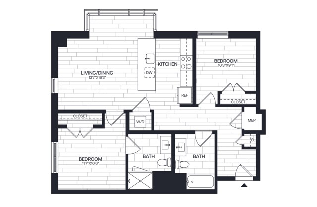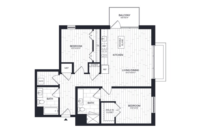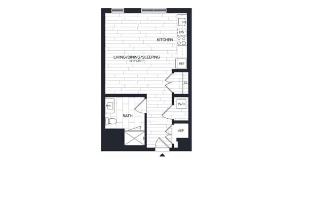 Estudio, 1 Baño, 511 pies²Precio Mensual TotalDisponible AhoraEl más grandeEsta opción tiene las unidades más grandes para este modeloGalería del Modelo