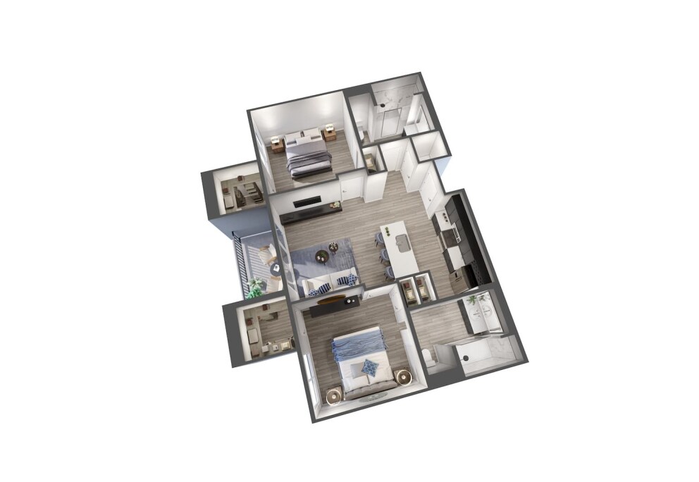 2 Dormitorios, 2 Baños, 1009 pies²Precio Mensual TotalDisponible AhoraGalería del Modelo