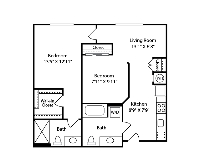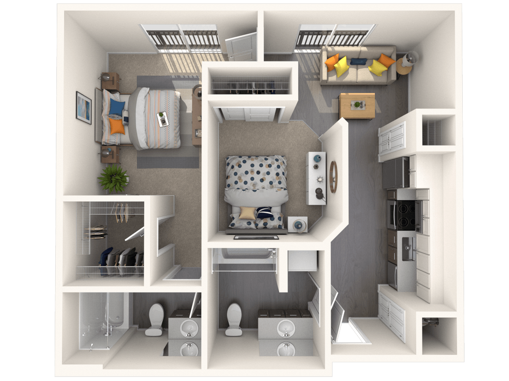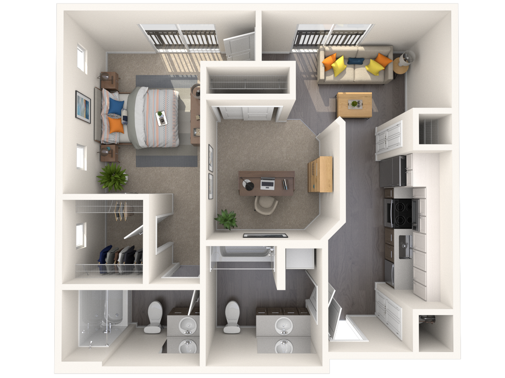 1 Dormitorio, 2 Baños, 719 pies²Disponible AhoraEl más grandeEsta opción tiene las unidades más grandes para este modeloGalería del Modelo
