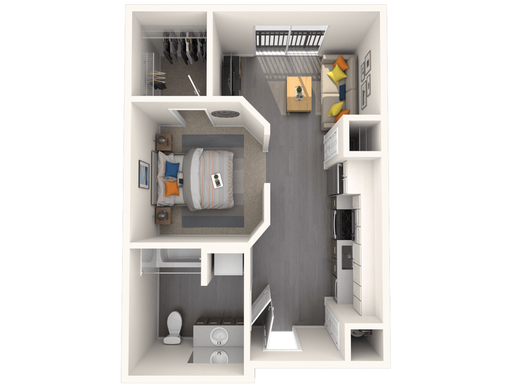 Modelo de apartamento: A1 - Large StudioDesde $8541 Dormitorio, 1 Baño, 459 sq ftDisponible December 20, 2025![]()