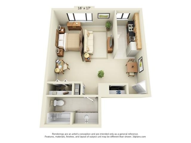Estudio, 1 Baño, 390 pies²Galería del Modelo