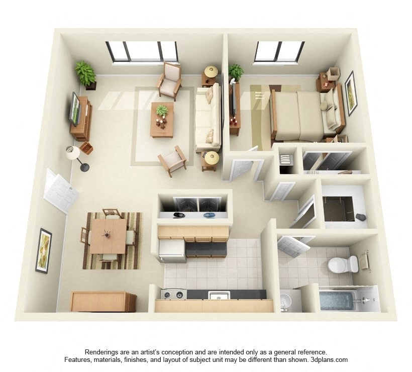 1 Dormitorio, 1 Baño, 665-790 pies²Galería del Modelo