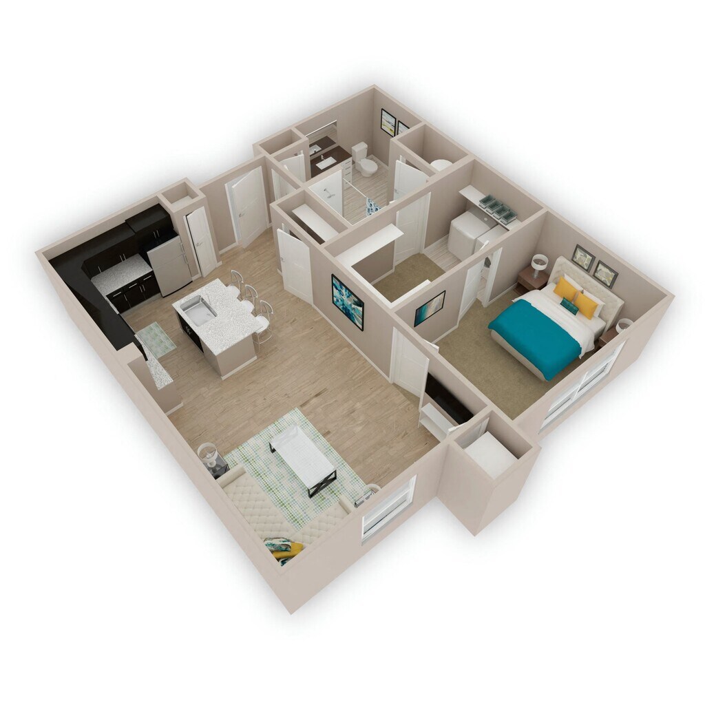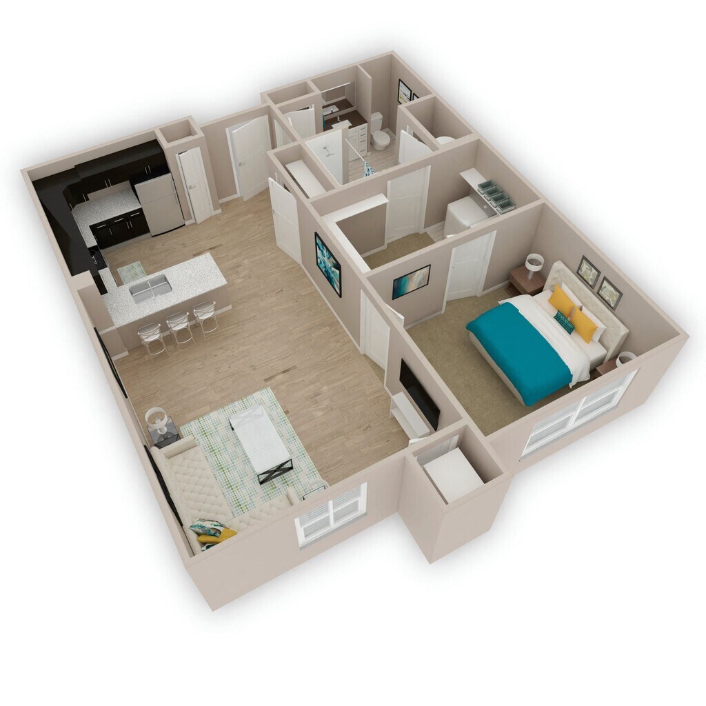 1 Dormitorio, 1 Baño, 826 pies²Disponible AhoraEl más grandeEsta opción tiene las unidades más grandes para este modeloGalería del Modelo