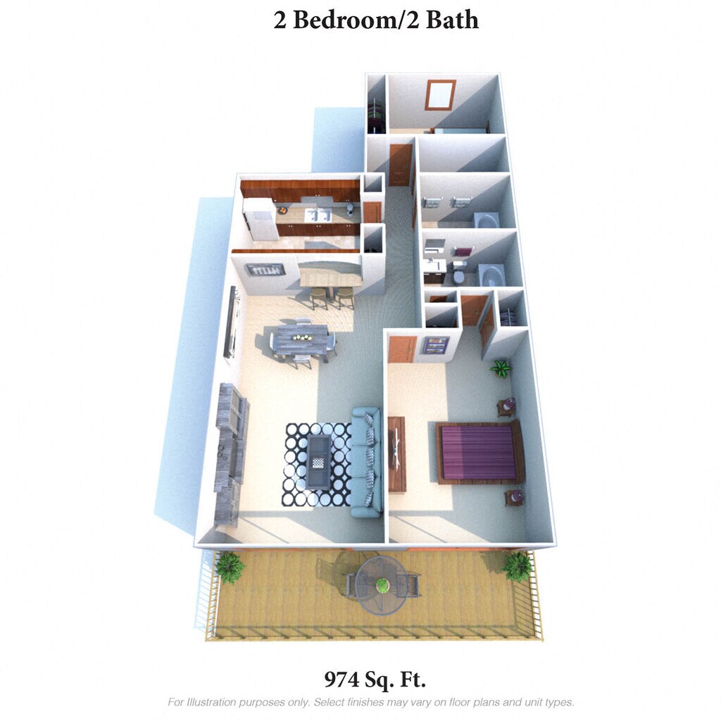 Modelo de apartamento: Two Bedroom Two Bath - 974SqFt2 Dormitorios, 2 Baños, 974 sq ftDisponible December 12, 2025![]()