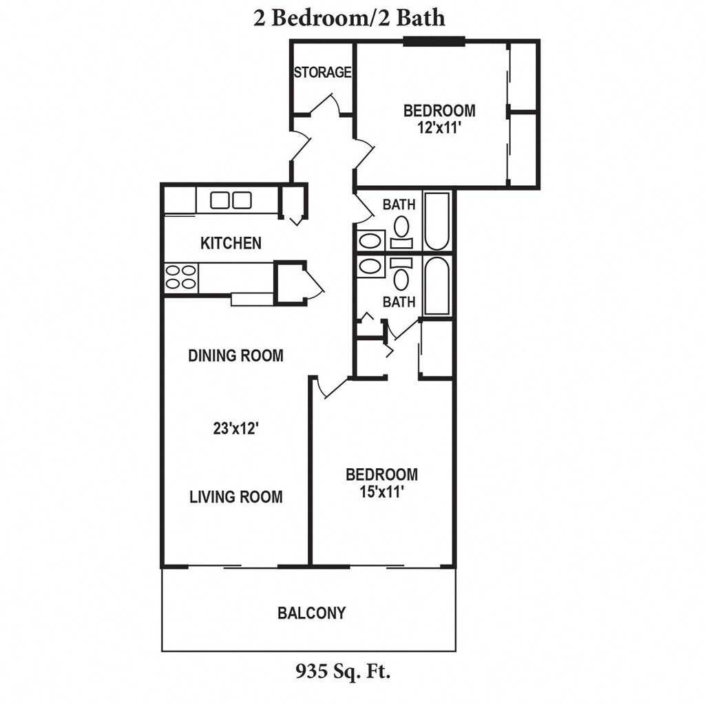 Two Bedroom Two Bath - 935SqFt - Plano 2 ![]()