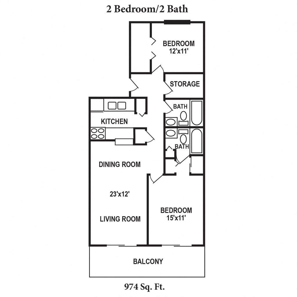 Two Bedroom Two Bath - 974SqFt - Plano 2 ![]()