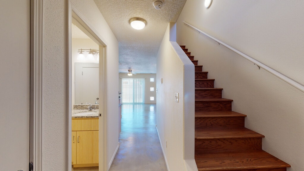 Contemporary Designed Town Home in excellent northeast height's location. Well-designed floor plan. 2017 construction, extremely low energy bills. Full stainless steel appliance package, granite countertops and bamboo cabinets. Sealed concrete floors downstairs, quality wood laminate upstairs. Bedrooms are big and bright with vaulted ceilings and in-suite bathrooms. Private backyards and common outdoor living areas feature low maintenance native landscaping and fruit trees. Other features include custom tile work in wet areas, highly efficient furnaces, and attached garages. Photos may be of similar units in the same complex. Great hiking and mountain biking in the Sandia Mountain foothills less than one mile east! On-site manager. Locally owned and managed, a beautiful private community.