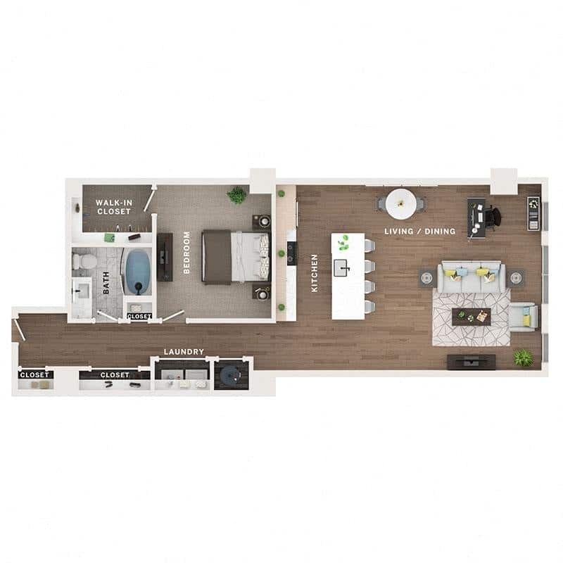 1 Dormitorio, 1 Baño, 683 pies²Disponible AhoraGalería del Modelo