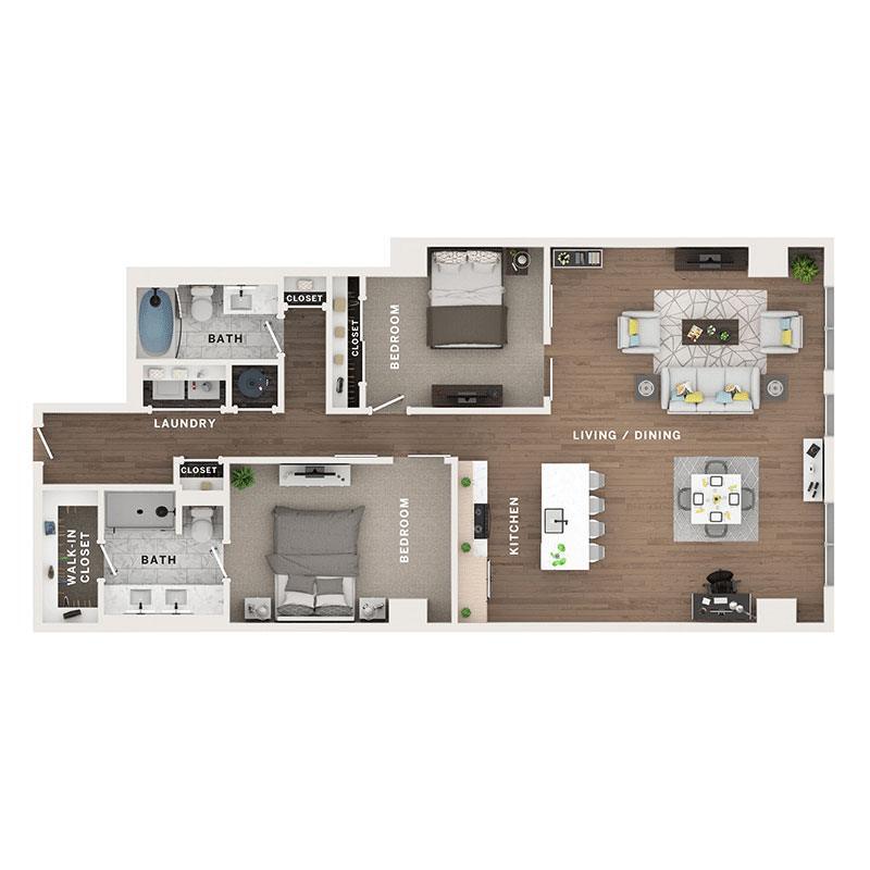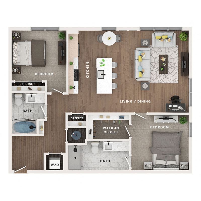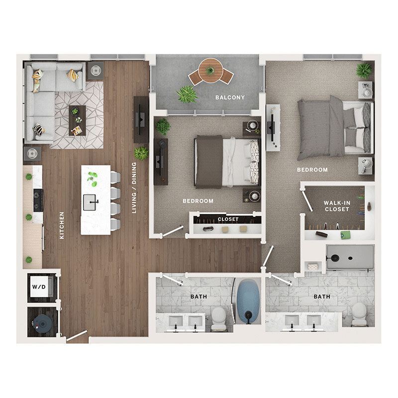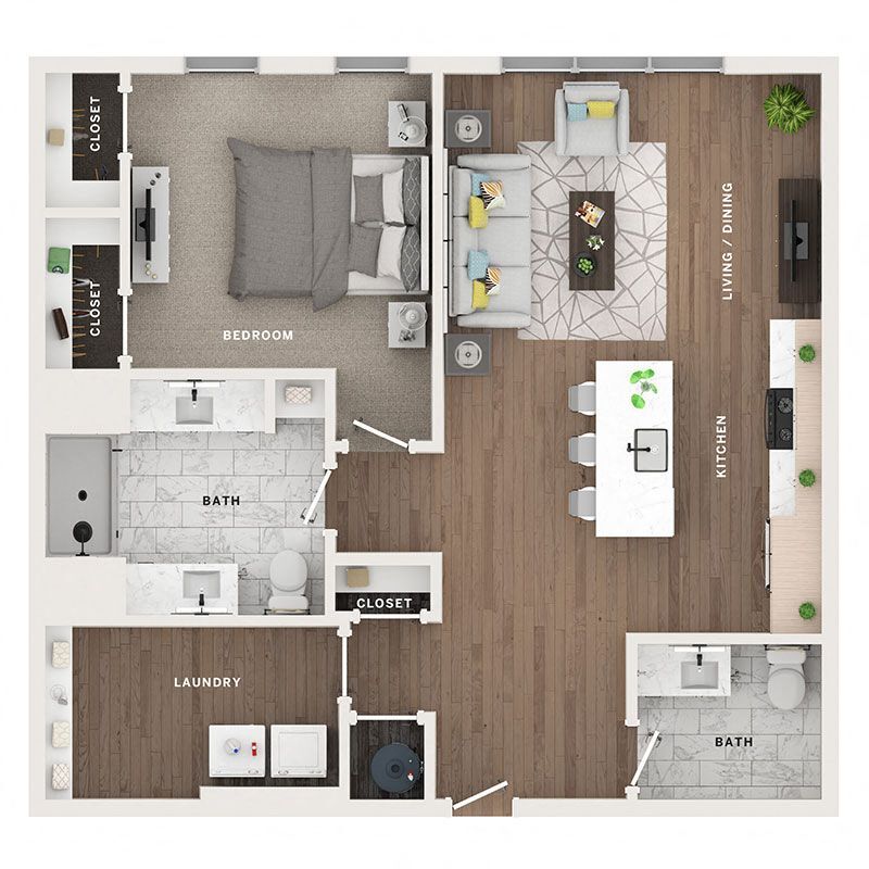 Modelo de apartamento: 1BR/1BA - A5Desde $1,8901 Dormitorio, 1 Baño, 683 sq ftDisponible Ahora![]()
