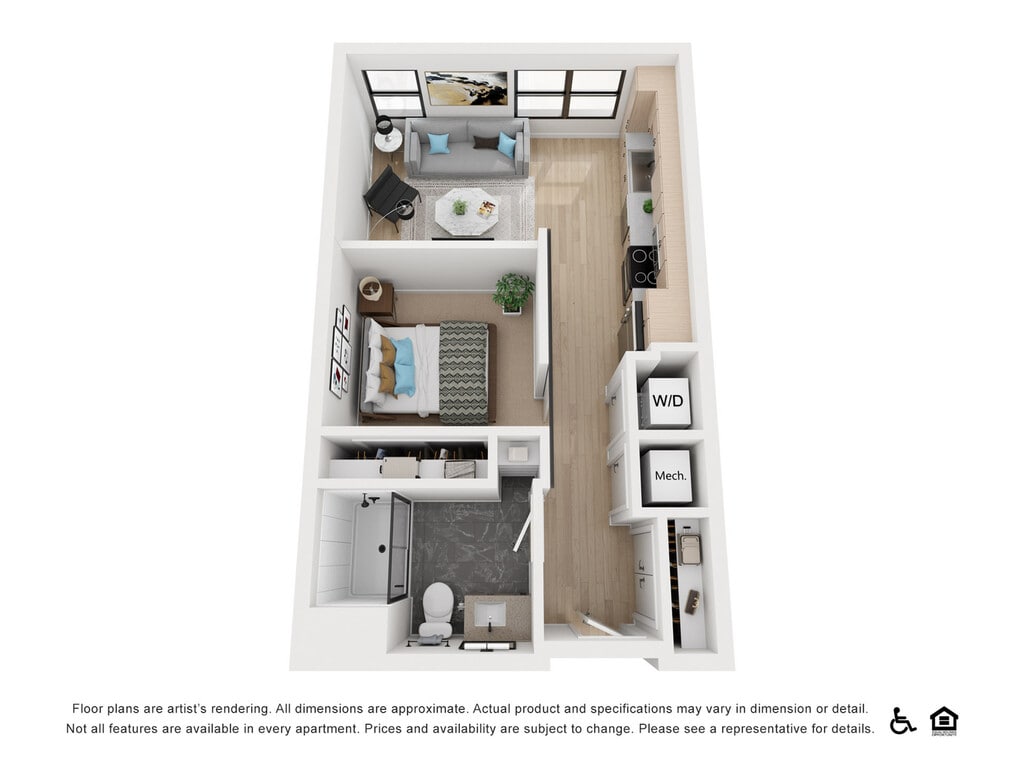 1 Dormitorio, 1 Baño, 633 pies²Disponible AhoraGalería del Modelo