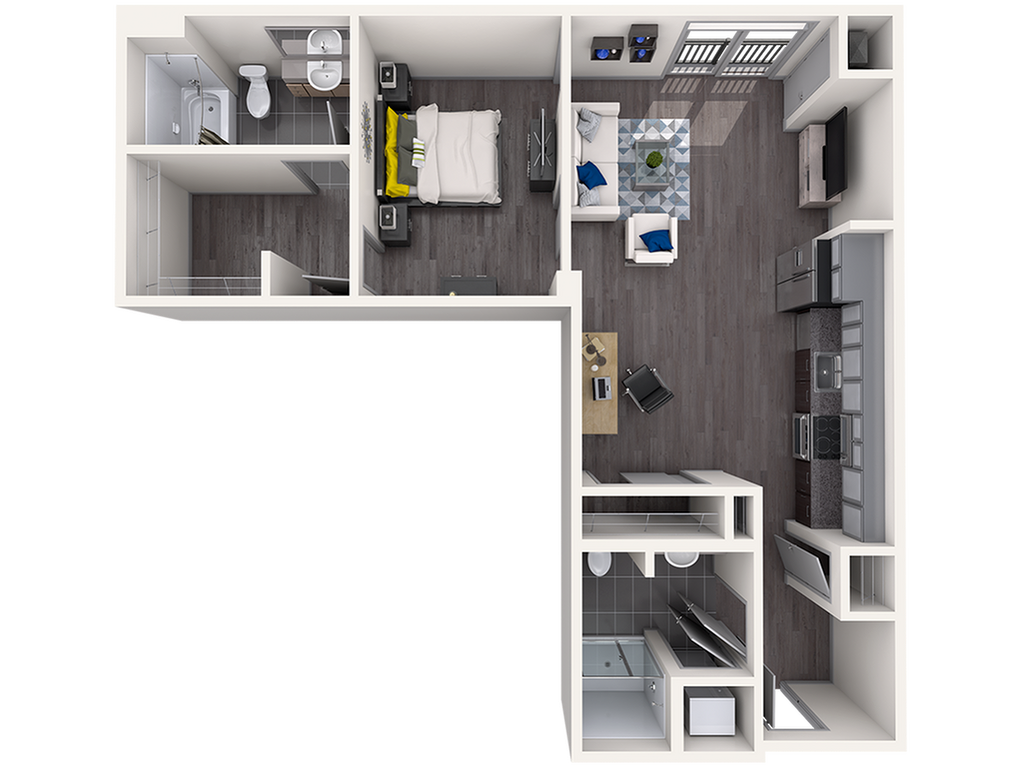 Modelo de apartamento: Stir1 Dormitorio, 1 Baño, 820 sq ftDisponible Ahora![]()