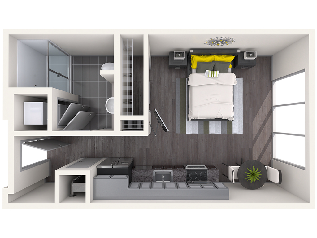 Zip Plus - Plano 1 Unidad de apartamento: 237Modelo de apartamento: Zip PlusEstudio, 1 Baño, 442 sq ftDisponible November 15, 2025Zip - Renovated