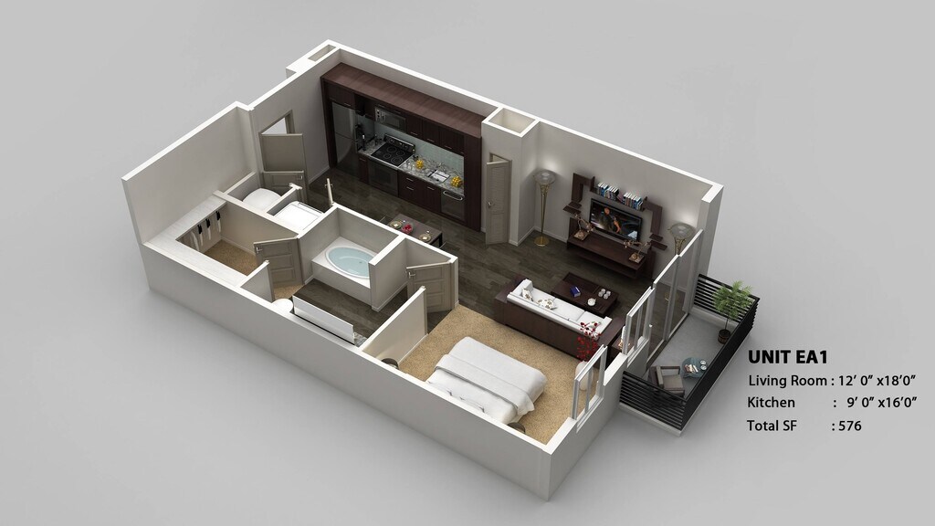 Estudio, 1 Baño, 644 pies²Disponible AhoraGalería del Modelo