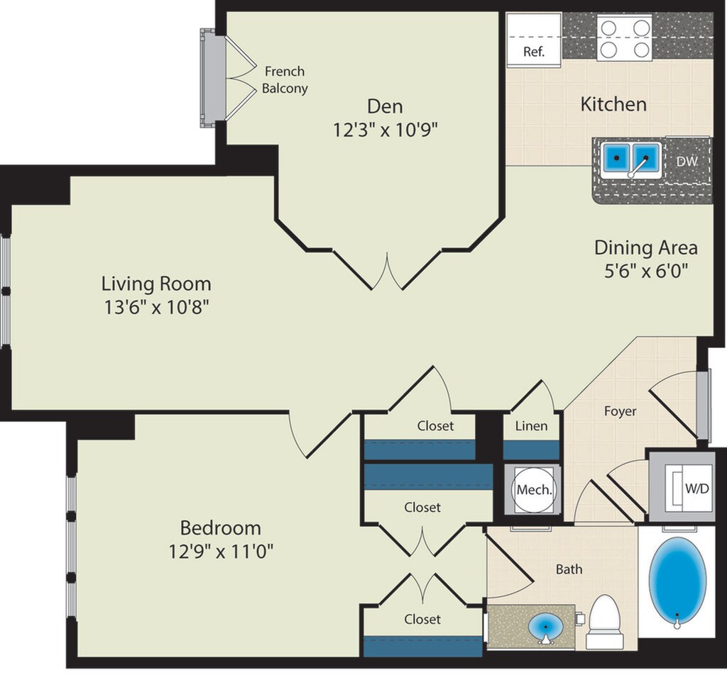 Modelo de apartamento: The Eisenhower - MPDUDesde $1,7651 Dormitorio, 1 Baño, 668 sq ftDisponible Ahora![]()