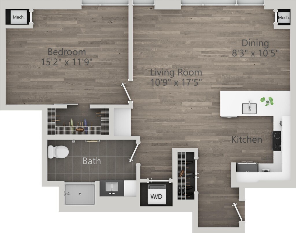 Estudio, 1 Baño, 520 pies²Más CargosDisponible AhoraGalería del Modelo