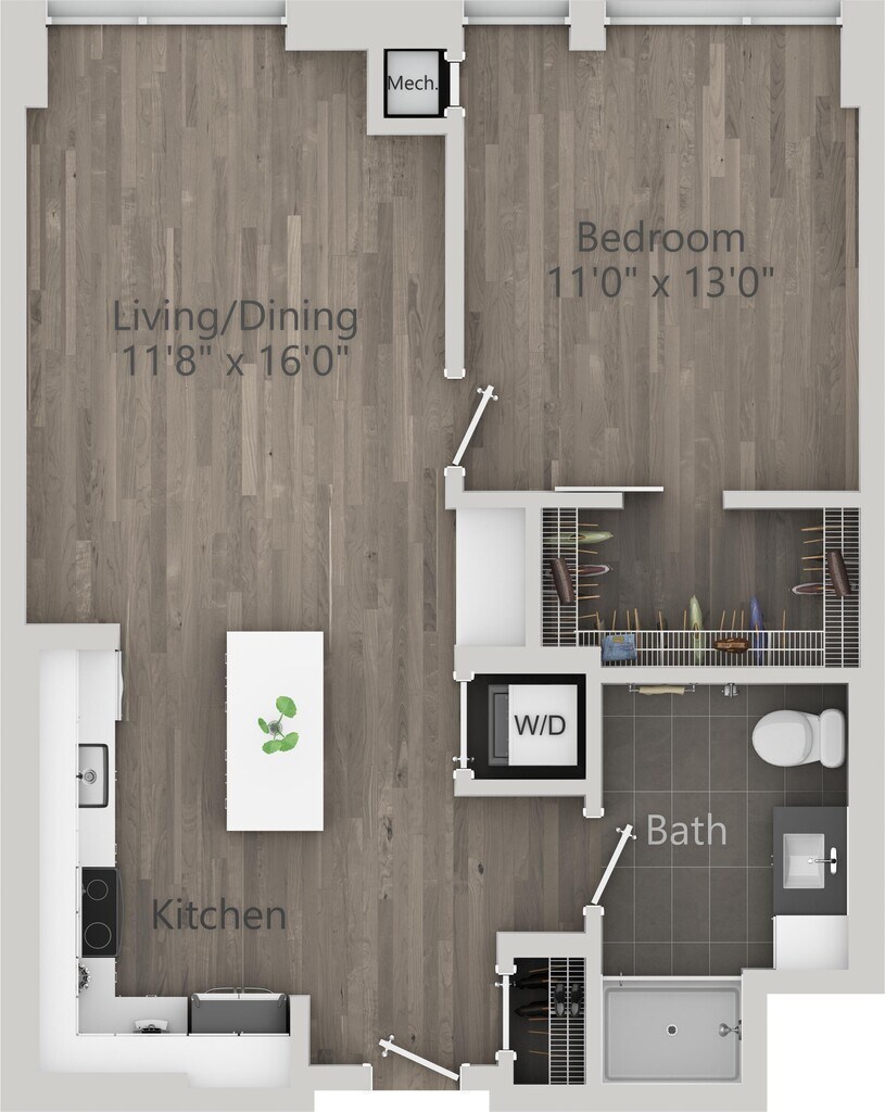 Estudio, 1 Baño, 590 pies²El más grandeEsta opción tiene las unidades más grandes para este modeloGalería del Modelo