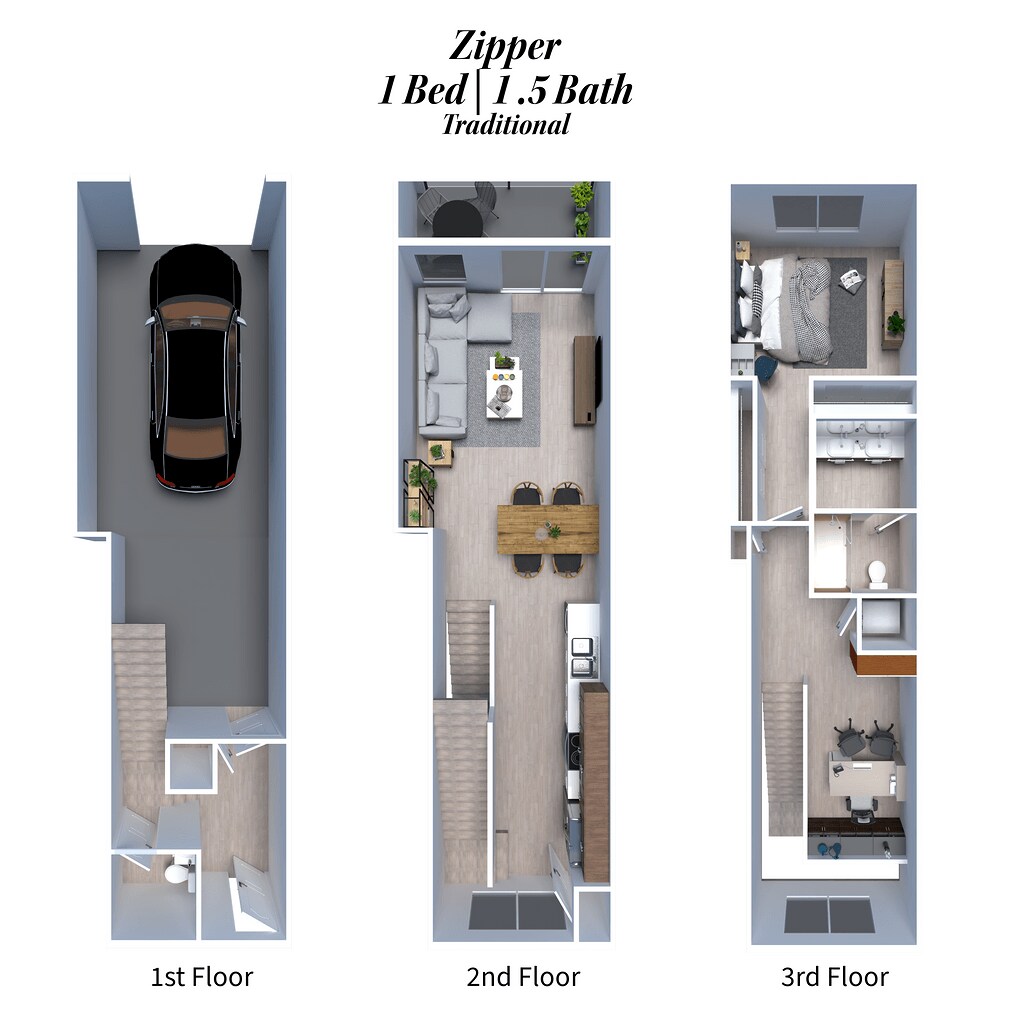 1 Bed / 1 Bath Tandem - Plano 1 1 Bed / 1.5 Bath Tandem