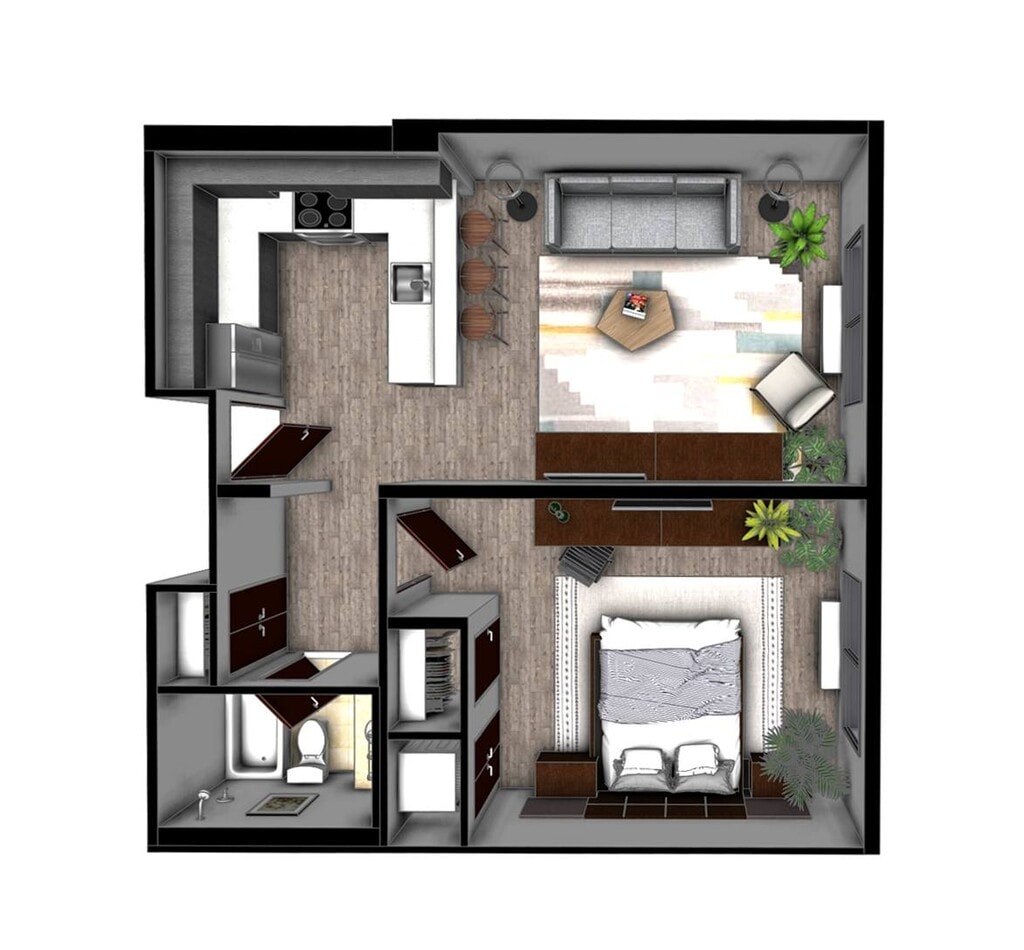 1 Dormitorio, 1 Baño, 660 pies²Precio Mensual TotalDisponible AhoraGalería del Modelo