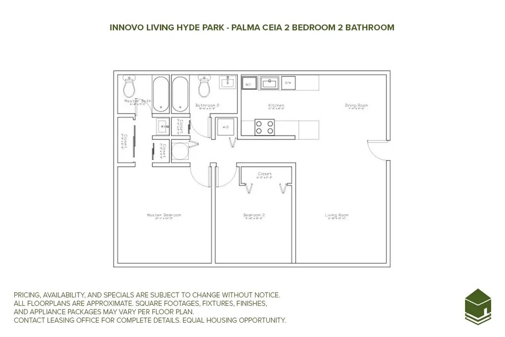 Innovo Hyde Park ofrece apartamentos de Estudio a 2 Dormitorios desde $1,607 con 407–835 pies cuadrados. Aquí está el precio actual y la disponibilidad: