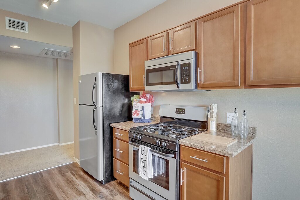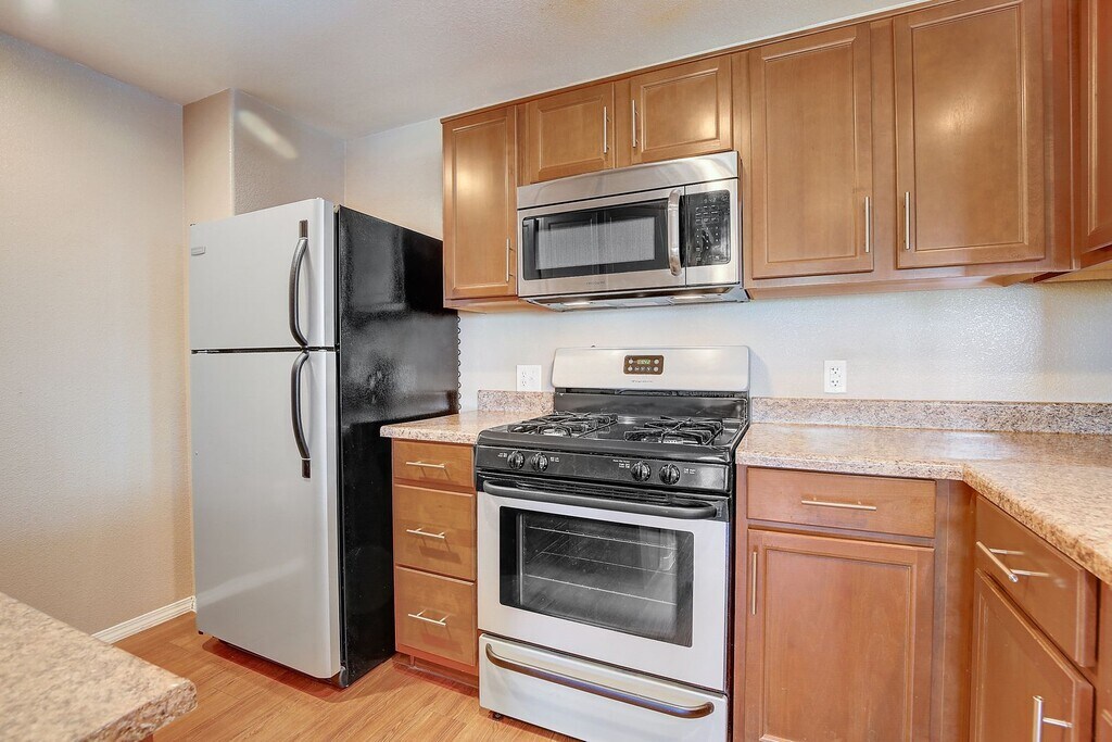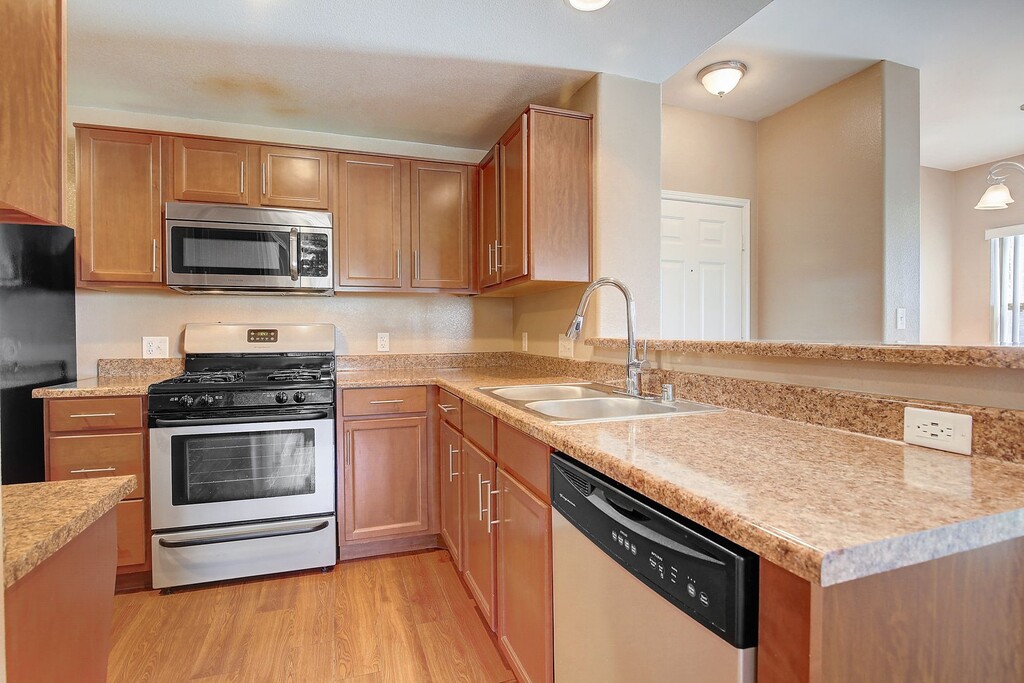 - refrigerador, microondas empotrado, estufa a gas, lavavajillas, triturador de basura